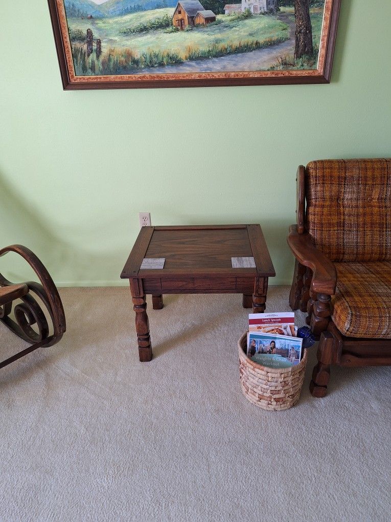 There are two of these end tables for $50 each. Buy one or both. Excellent condition. Because they are vintage, you might consider restaining them. Each measures: 20" high x 22"x 26" can be turned so that they are 22" across or 26" across. Buyer must have own means of delivery.