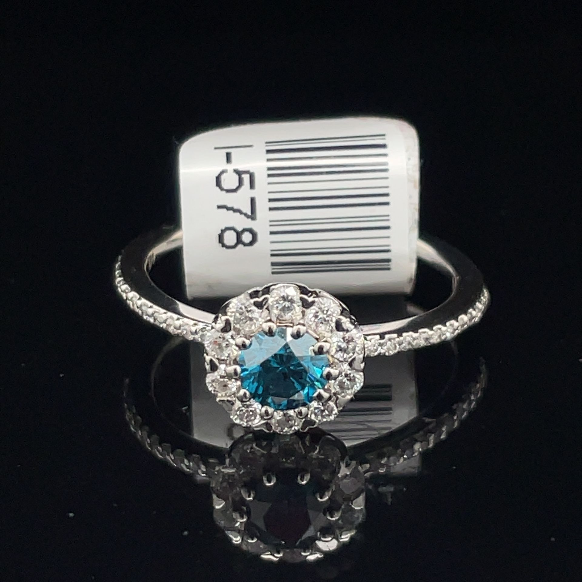 14KT White Gold Blue Diamond Women’s Ring 2.33g Size 7 I-578