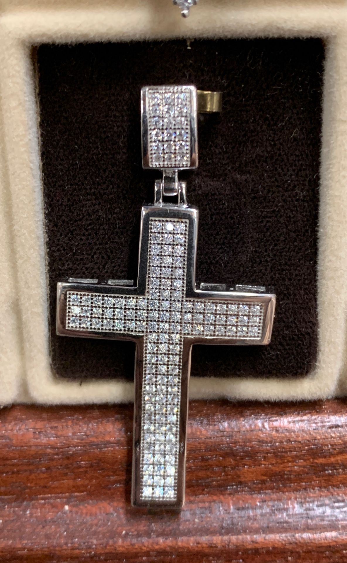 Iced Out Silver Cross Charm