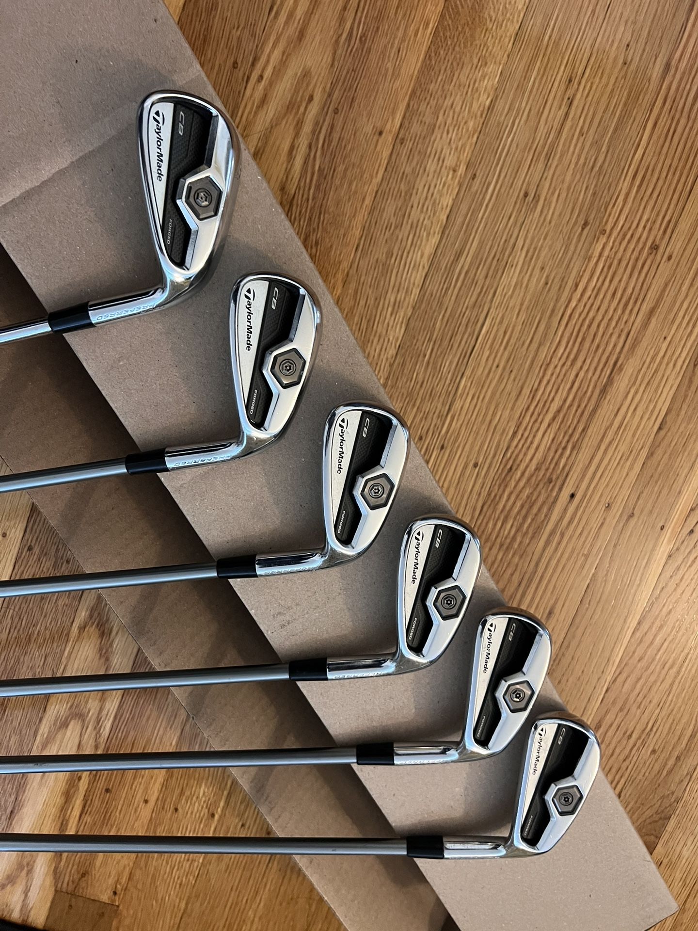 Please note $239 price is Firm for regular graphite shaft 6-Pw (5-Club set) only, the matching 51° Approach wedge is in Steel Stiff flex and +$40 more if you want it. Good condition TaylorMade tour preferred CB Forged irons 6/7/8/9/Pw in Grapite regular flex shaft. Standard Men’s right handed clubs. Good grips don’t need to be replaced. *If you’re looking to complete a full set of clubs I also have plenty of other premium options available to accommodate a full bag. Have Bags too!!