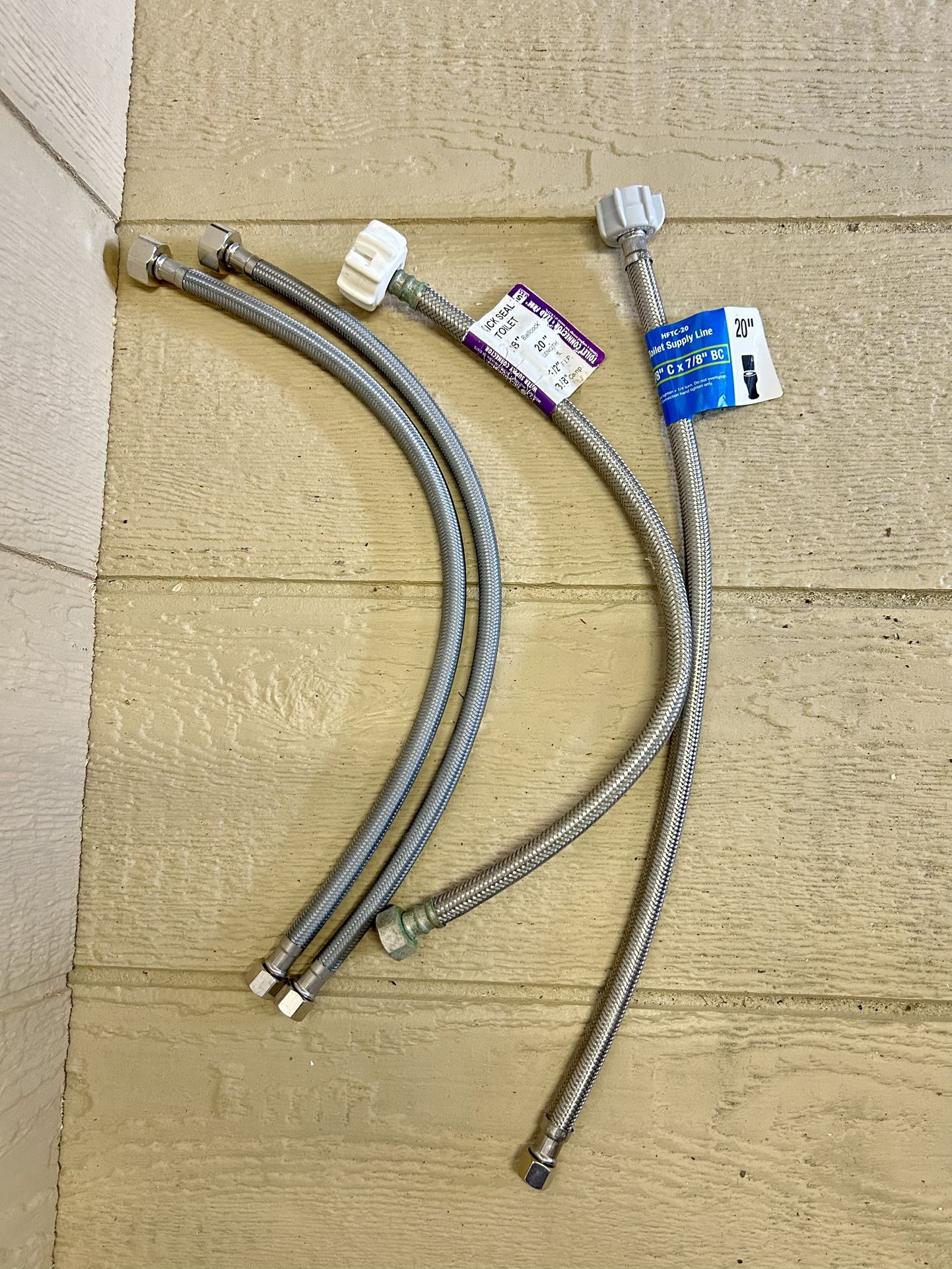 Two toilet supply lines (1/2” and 3/8”) and two standard faucet supply lines.