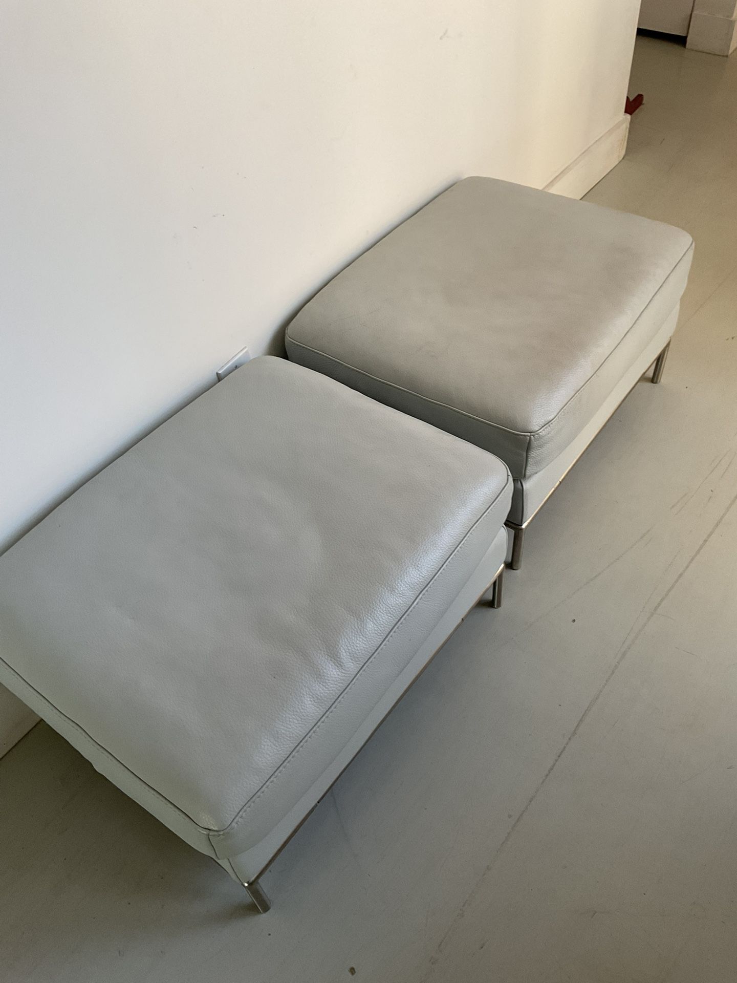 Two grey leather ottomans great condition very comfortable