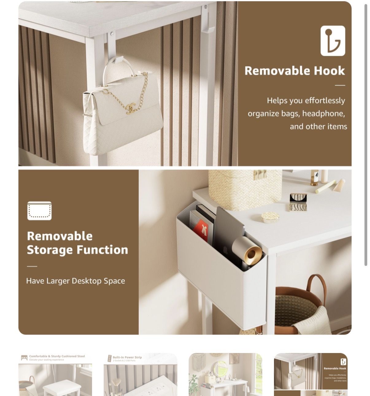 KAI-ROAD Cheap Makeup Girls Vanity Set with Mirror and Stool and Lights & Power Outlet, White Make Up Dressing Table with Chair