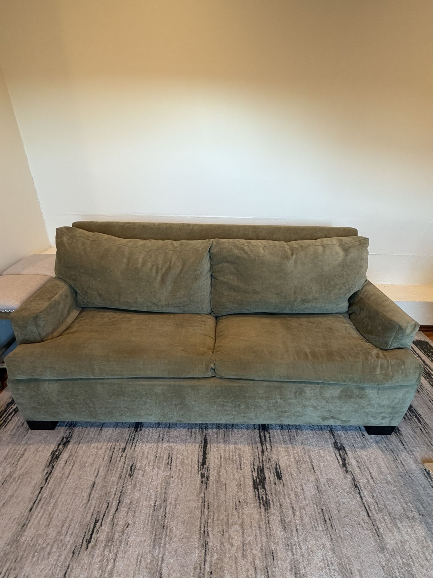 In like-new condition, this sofa also converts into a comfortable sleeper bed. It is extremely cozy and well made. The sofa was plastic-wrapped and stored in a grandmother’s house, so it has seen very minimal use and remains in excellent condition. Originally purchased for $2,900. I am moving, and unfortunately it does not fit in my new living room. Priced to sell quickly at an 80% discount. Asking price: $550 Serious inquiries only. Great quality, great deal.