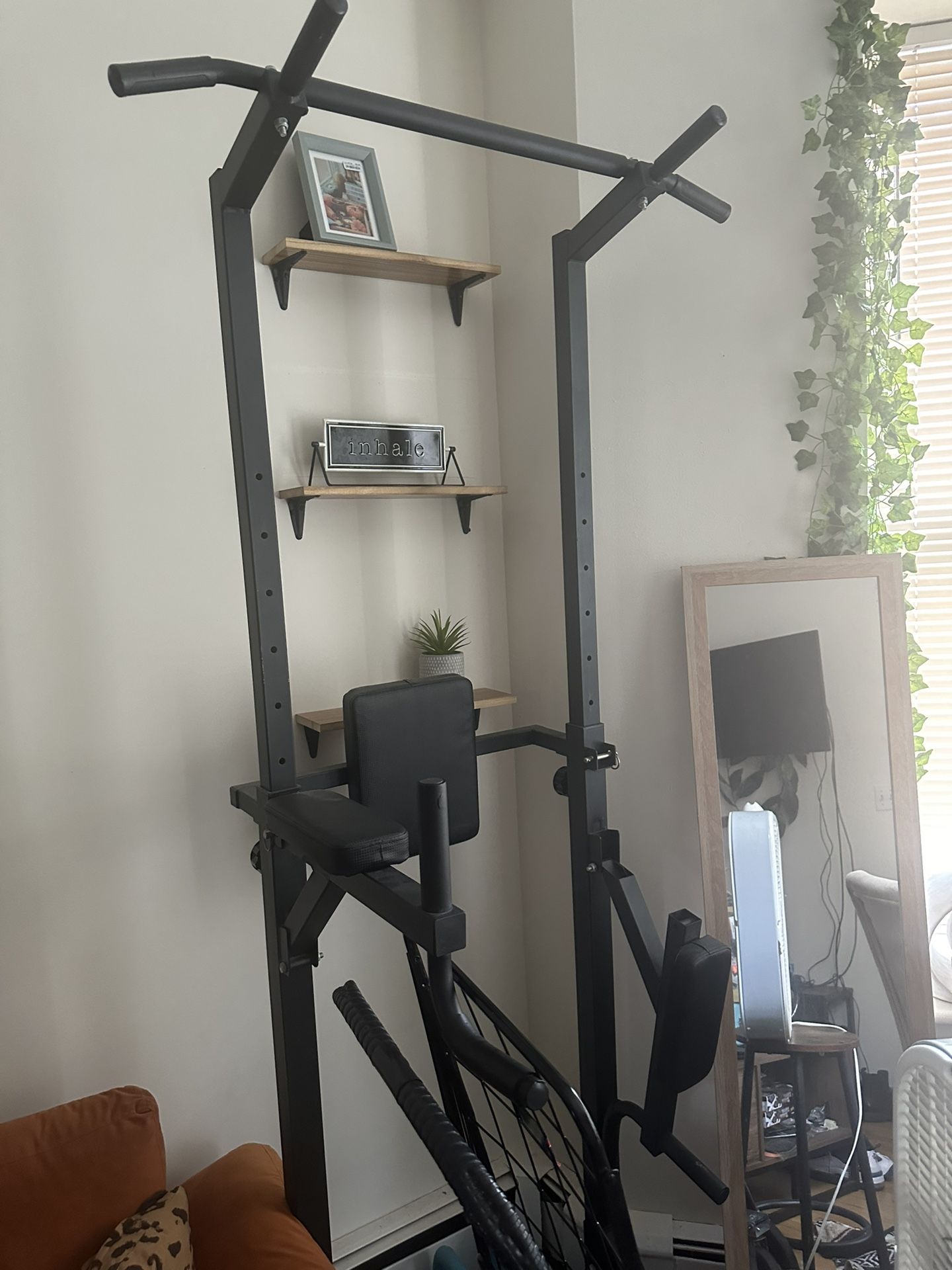 Pull up, leg up, you can work out your whole body on this bad boy! Comes apart for easy move but you should come in a decent sized car for pick up.