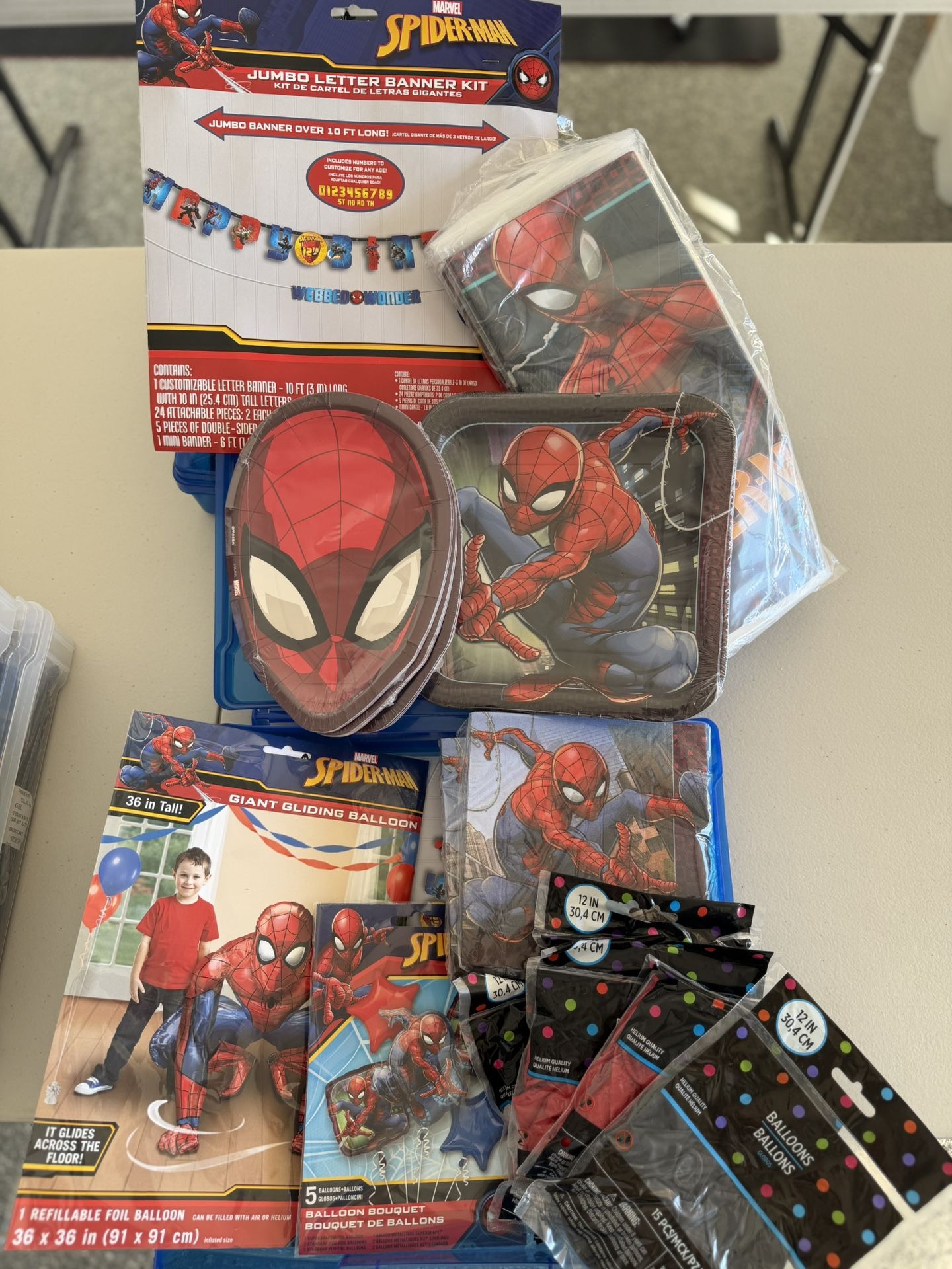 Spider-Man, minny mouse , frozen , happy 60th , paws-despicable me Cannot be broken up. $40 a set and $50 for Spider-Man Also ballon weight box of 12 for $10 orange