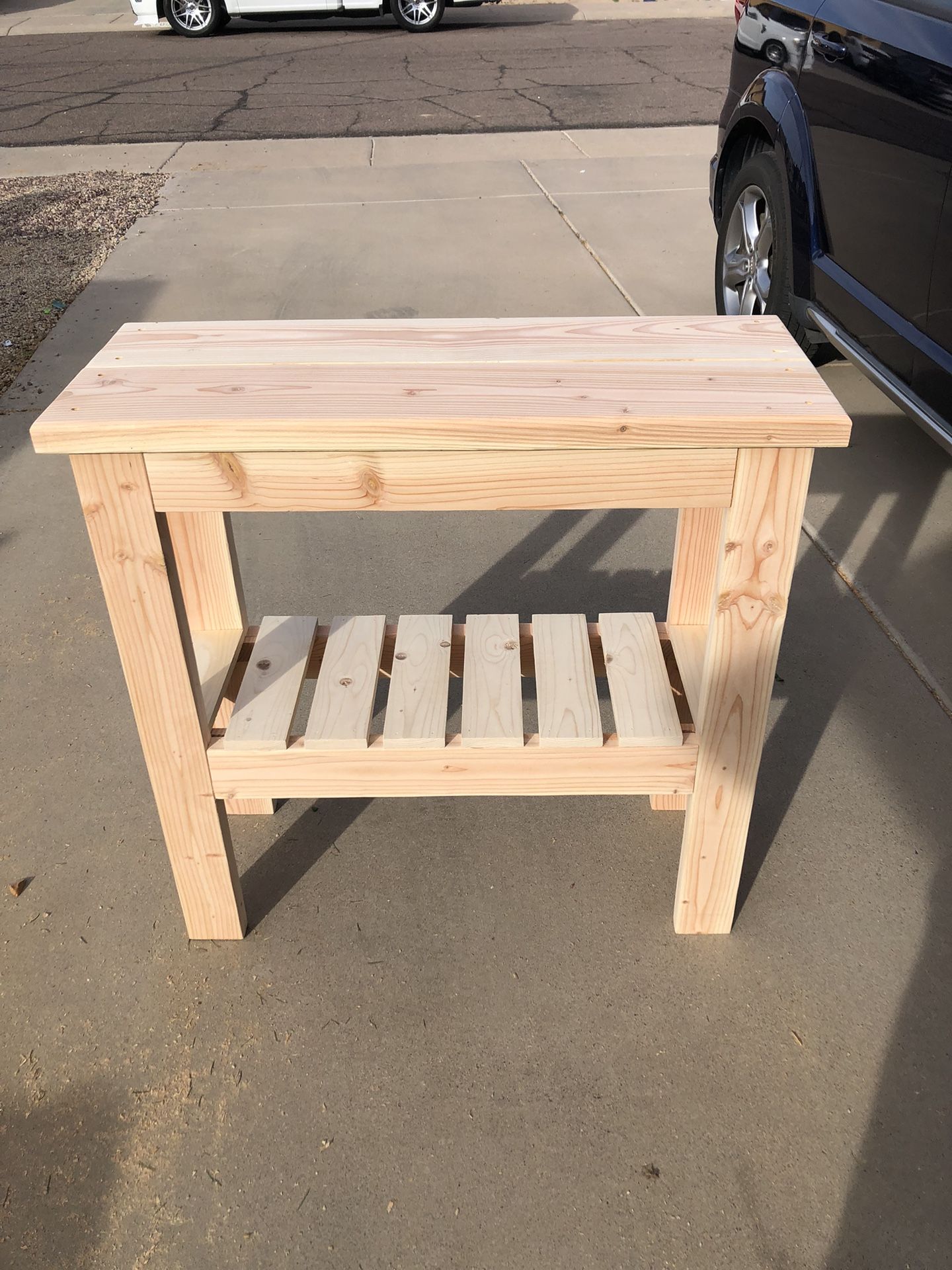 Custom built farmhouse entryway table or use as serving island in kitchen 36 inches long 35 inches tall 14.5 inches wide sanded and ready for paint or stain