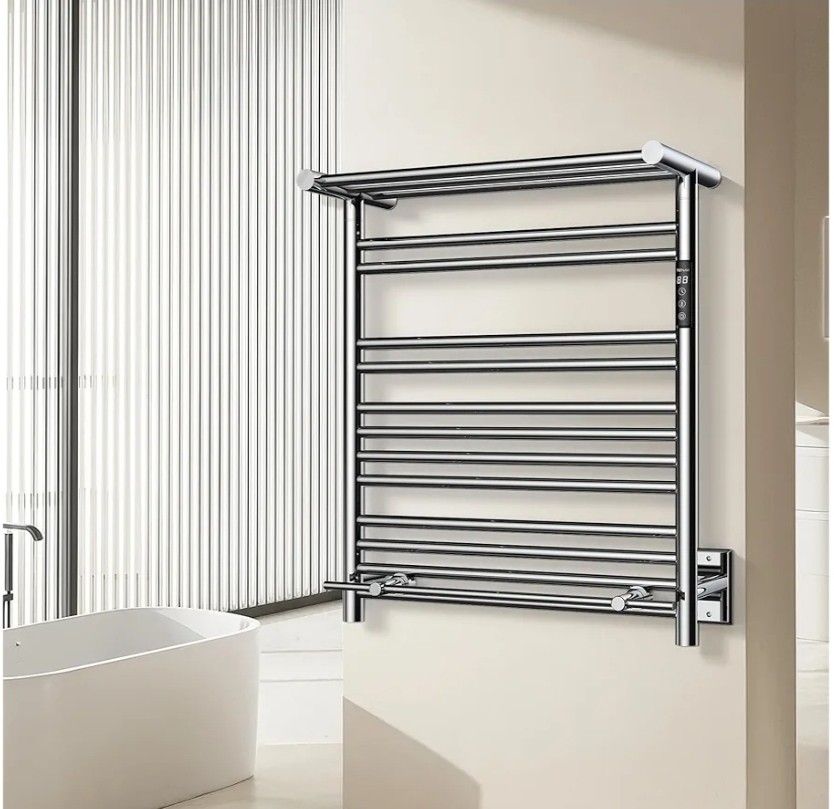 P&Bhusri Heated Towel Rack with Top Shelf, Towel Warmer for Bathroom, H 27.56 x W 23.62, Wall Mounted Towel Warmer Rack, Hard-Wired/Plug-in,