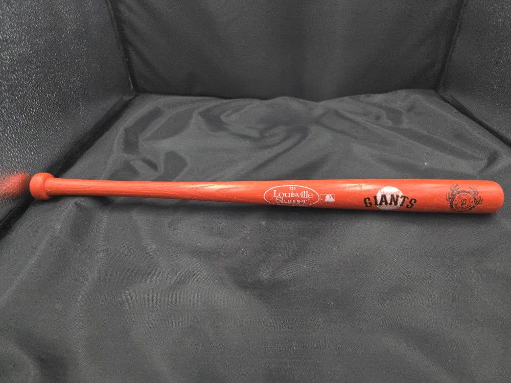 Official Louisville Slugger 125 commemorative mini bat Bright Giants orange finish with team logo Features Spring Training branding and MLB logo Perfect display piece for Giants fans or baseball collectors