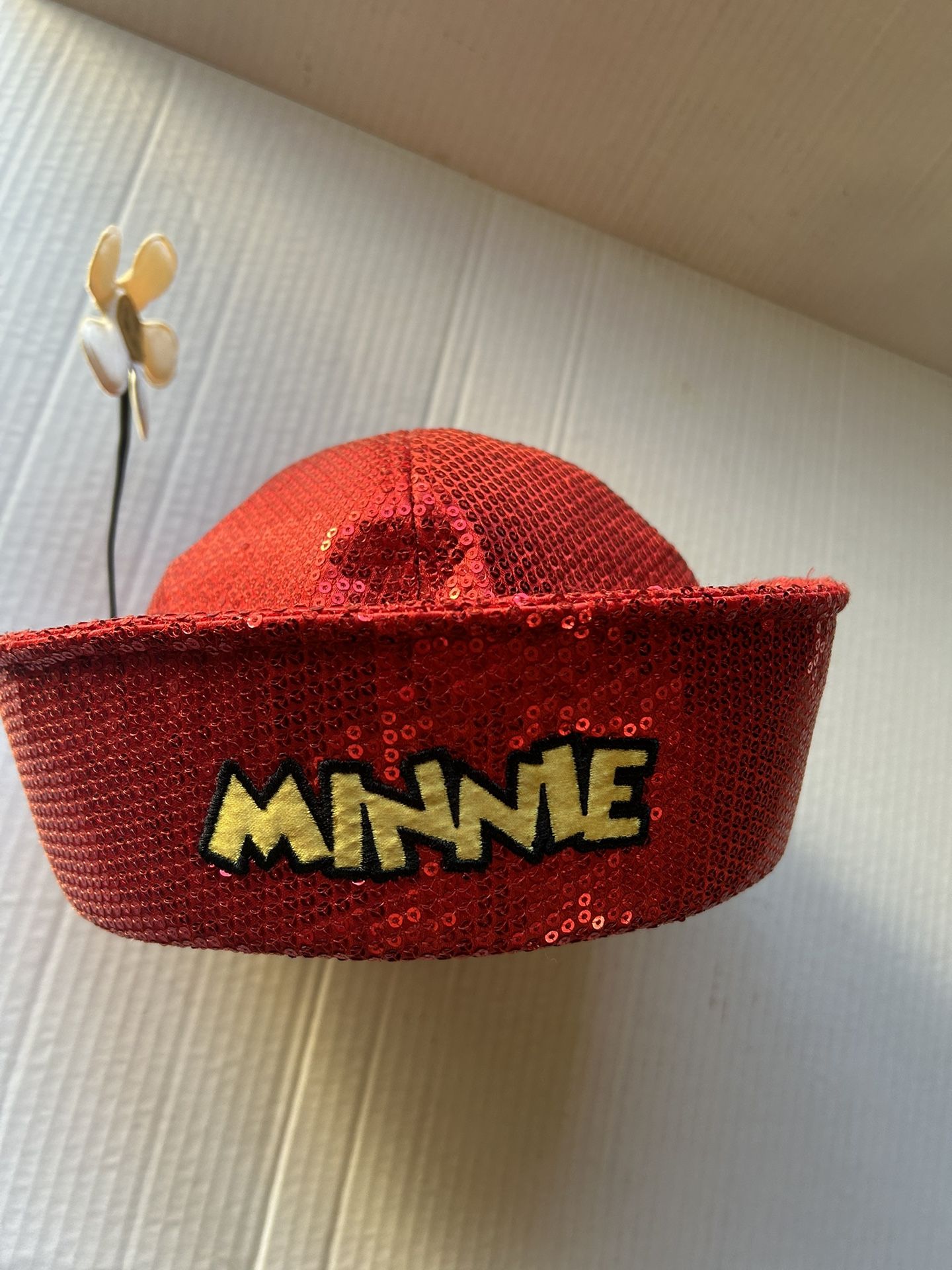 Minnie Mouse red sequin hat with a flower Size: Adult Condition: Pre-owned Good Please see photos for specifics carefully as they are part of the description. Feel free to ask questions if unsure. Send me a message if you have any questions. All Sales Are Final No Refunds No Exchange Thank you for your interest! #MinnieMousehat #redsequinhat #disneyhat #vintageminnie