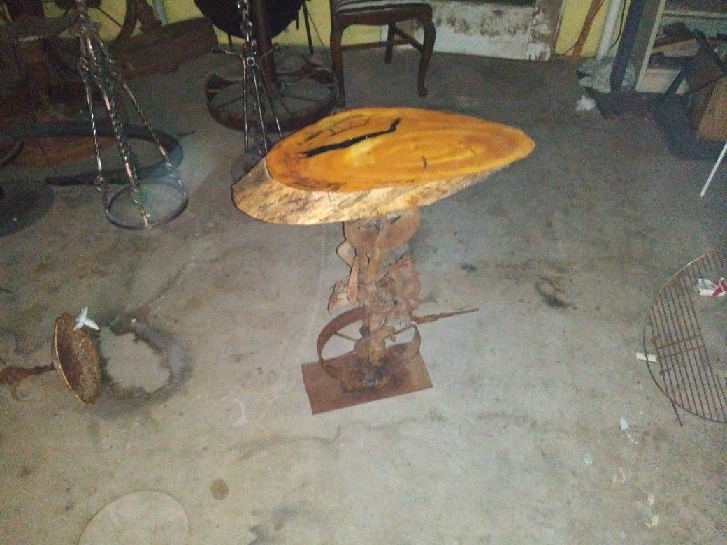 Custom table made from old farm equipment