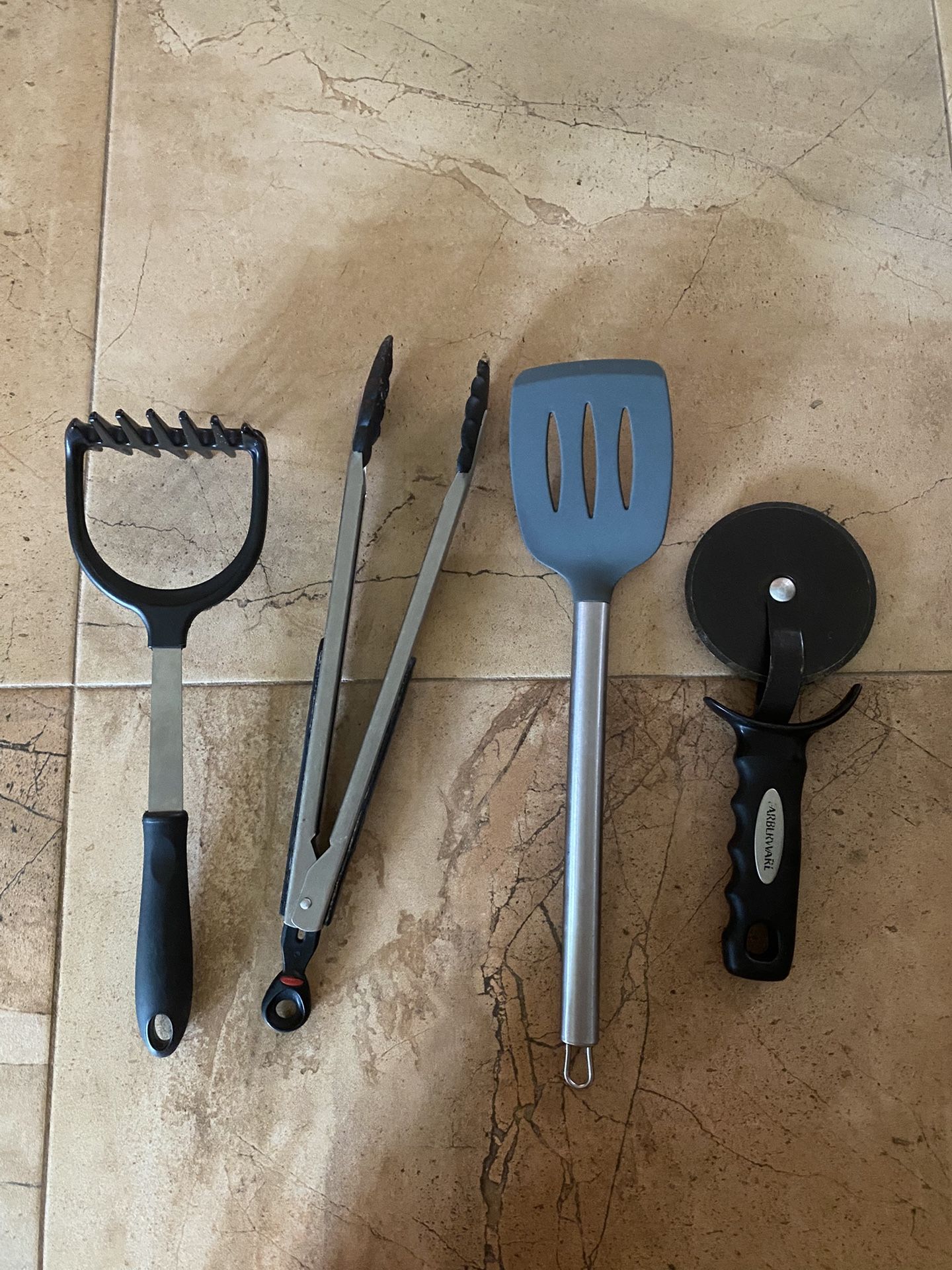 Spatula, Pizza Cutter, Tongs, Potato Masher