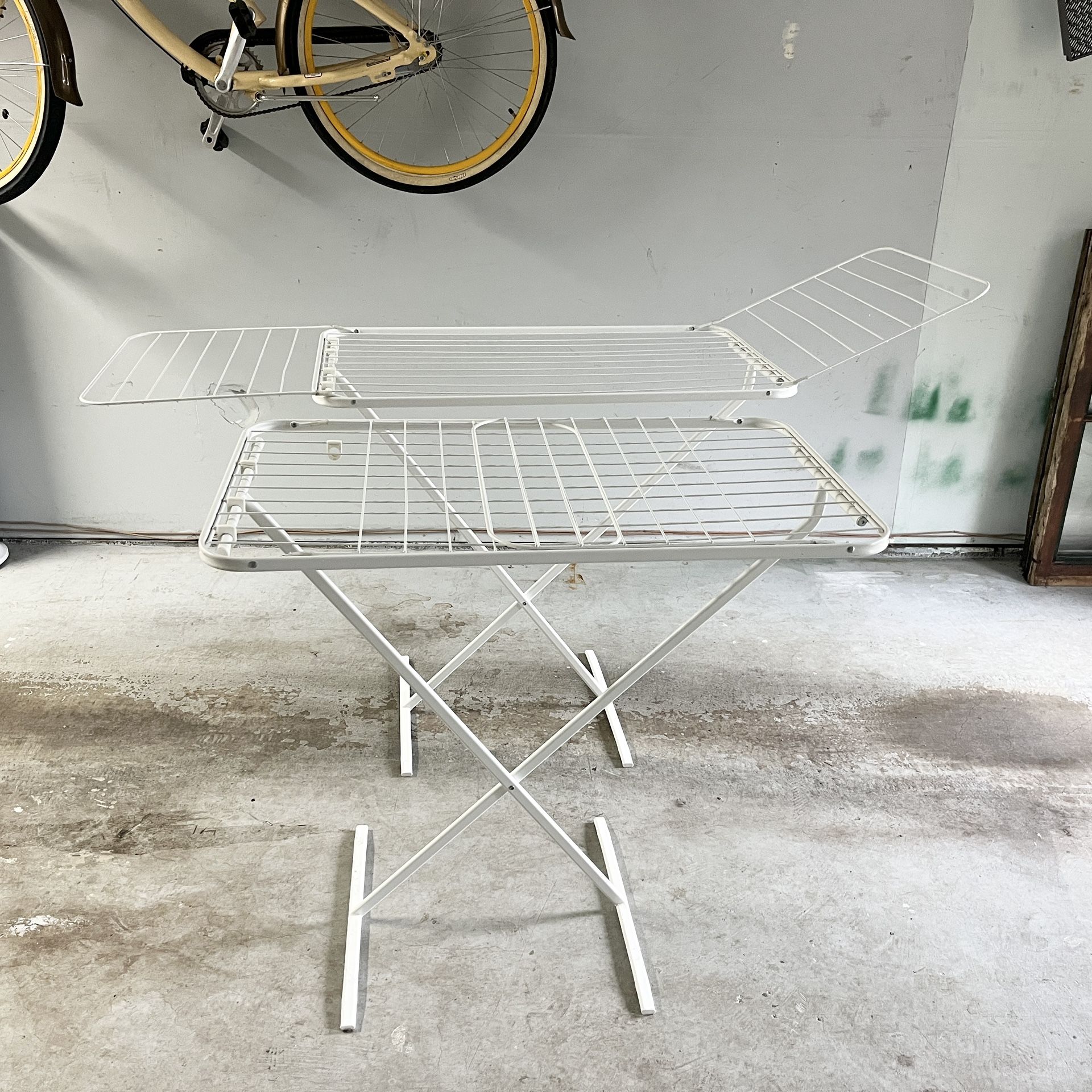 Two large metal racks. Collapsible. Fold out extensions on each side. 35”H x 38”L x 23”W. Approx 68”L with extensions out. Price is for both.