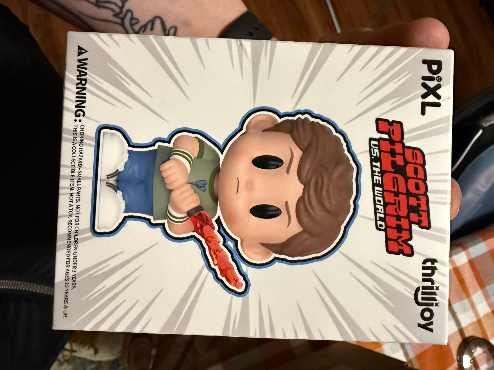 Thrilljoy blind box for Scott Pilgrim Vs the World. Figures come with boxes that connect to each other in any order that you want. There’s magnets in the boxes and mini figures to keep them in the box so they don’t fall over. The characters that are available are: -Todd Ingram x 4 -Nega Scott with movie sign x 3 -Knives Chau x 3 -Scott Pilgrim x 2 -Ramona Flowers x 1 $10 each or possible bundle price if you buy a few