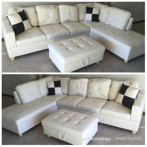 Brand New White Leather Sectional With Storage Ottoman