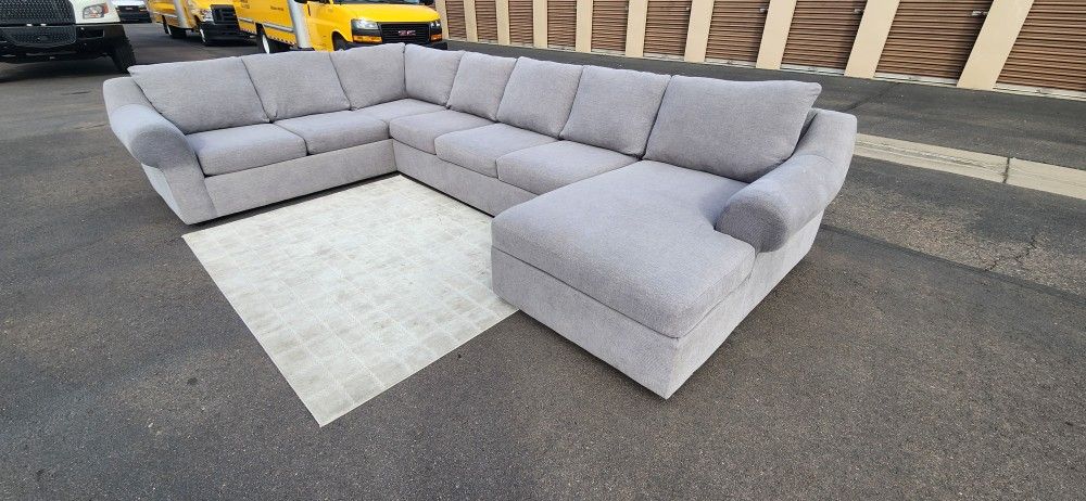 Large Grey Sectional Couch. Smooth, linen, gray fabric. Large rolled armrests. Removable, reversible, and machine washable slip covers with inside liners. It has been thoroughly cleaned, then placed in storage. Seperates into 3 pieces. No smoking, no pets. Dimensions are in the last photo. It is in great condition. 💫Pickup and viewings in Avondale 💫Delivery to greater valley, Phoenix area