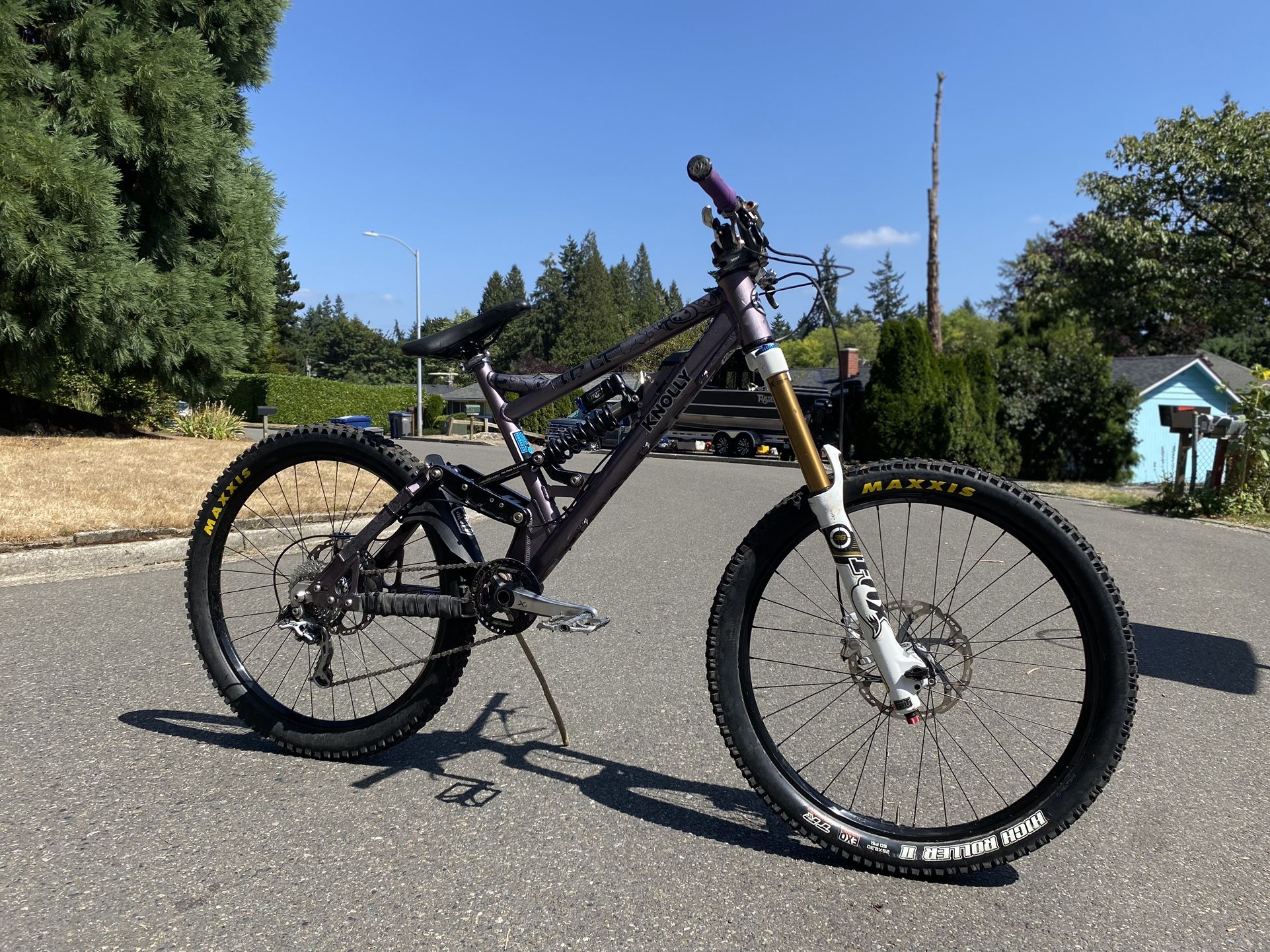 This bike has been an absolute wonder to ride for the last couple years, I am the mechanic in the group so it has been taken care of and any blemishes have been there previous to me. I am the third owner but the frame and linkage can take a serious beating before anything might pop up. It has 203 rotors with Shimano xtr brakes for plenty of power Brand new tires Chris King hubs 9 speed cassette Super beefy Fox 38 fork Fox DHX RC4 in the rear for a plush ride It comes with a new set of bars Great bike park ride and has seen a great time but I am looking to cut down on bikes in the garage and this bike is in the best shape to see a new home.