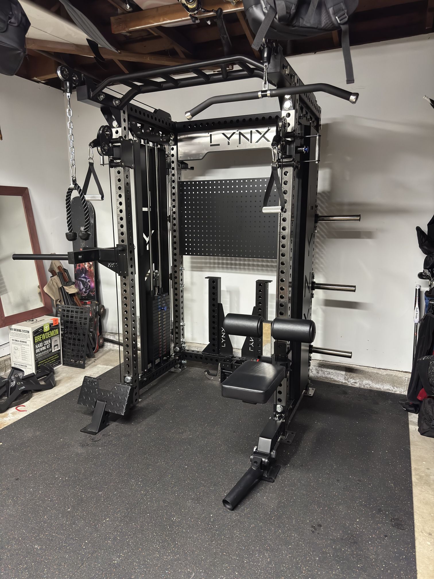 At LYNX, we provide a wide range of high-quality gym equipment designed for serious lifters and fitness enthusiasts alike. Our lineup includes All-In-One Trainers, Squat & Bench Racks, Smith & Cable Machines, Adjustable Dumbbells, Olympic Barbells, Weight Plates, Bumper Plates, Benches, Attachments, and Home Gym Essentials. π Schedule a visit to our Anaheim showroom to see the equipment in person and test the build quality for yourself. π FREE Local Delivery Available π This compact yet heavy-duty machine is perfect for both home gyms and commercial setups. π§ Key Specs: β’ Dual 200lb weight stacks (1:1 and 2:1 pulley ratio) β’ Constructed with 11-gauge steel β’ 3β x 3β steel uprights with laser-cut holes and numbering β’ Heavy-duty 1β hardware β’ Smooth, commercial-grade pulley system β Whatβs Included: β’ J-cups (pair) β’ Safety spotter arms (pair) β’ Multi-grip pull-up bar β’ 6 plate storage horns β’ Premium aluminum pulleys β’ Commercial cables β’ Front foot extensions for added stability π Bonus Attachments: β’ Dip Bar β’ Lat Pulldown Seat β’ Landmine Attachment β’ Low Row Foot Plate β’ Peg Board β’ Tricep Rope π¨ Color Options: β’ Clear Coat (Silver) β’ All Black π¬ Need more gear? Browse my profile for more premium equipment and message me for custom bundle deals and exclusive offers.