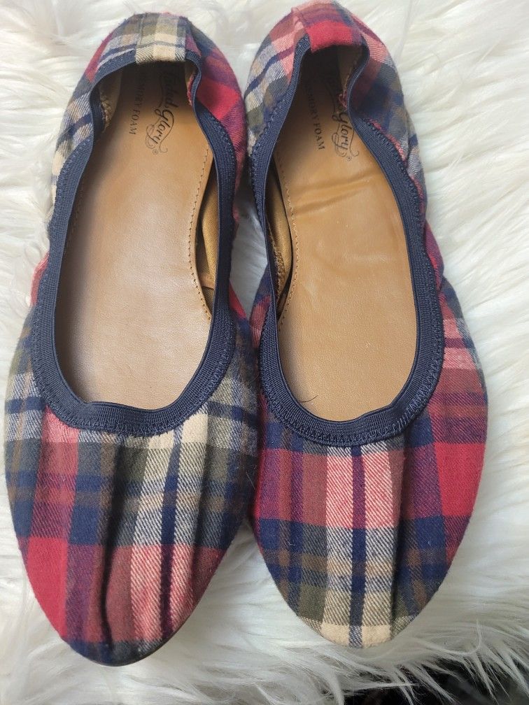 plaid slip ons ... memory foam, size 10 ( cute to slip in purse after a long day in heels)