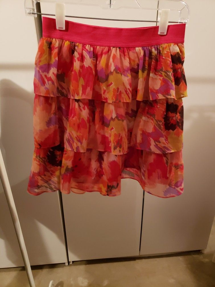 Gap Kids Pink with floral print Stretch Skirt Size XXL Plus (14-16) could fit adult Elastic waistband shell- lining interior slip. 100% polyester. Used, great condition , refer to pictures for color and print of skirt Non Smoking Household