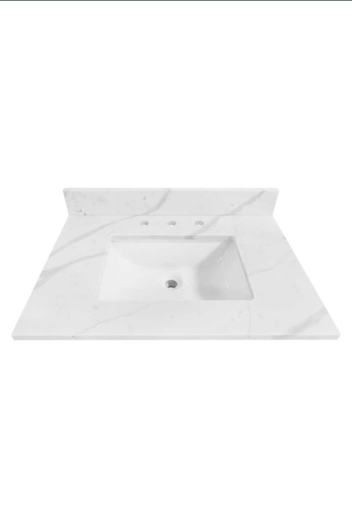 Brand New allen + roth Calacatta quartz 31-in x 22-in White Quartz Undermount Single Sink 3-Hole Bathroom Vanity Top