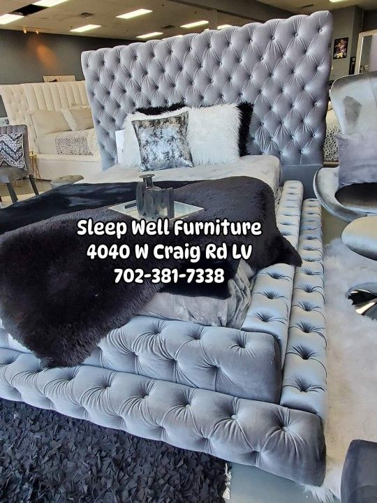 Brand new luxury Queen size bed frame 👉👉$930 👉NOW! (Originally $1100) Black or gray Available king 🙋‍♂️👉SLEEP WELL FURNITURE 4040 W CRAIG RD LAS VEGAS Open 10-7pm Hablamos Español 👉We offer Financing💲 Take home it Home 👉$50 DOWN No credit required, Zero interest up to 120 days Select from Koalofi, Acima, Kornerstone, Kafene finance. Furniture Sectional Sofa Queen King Mattress Bedroom Bunk beds Dining table sets
