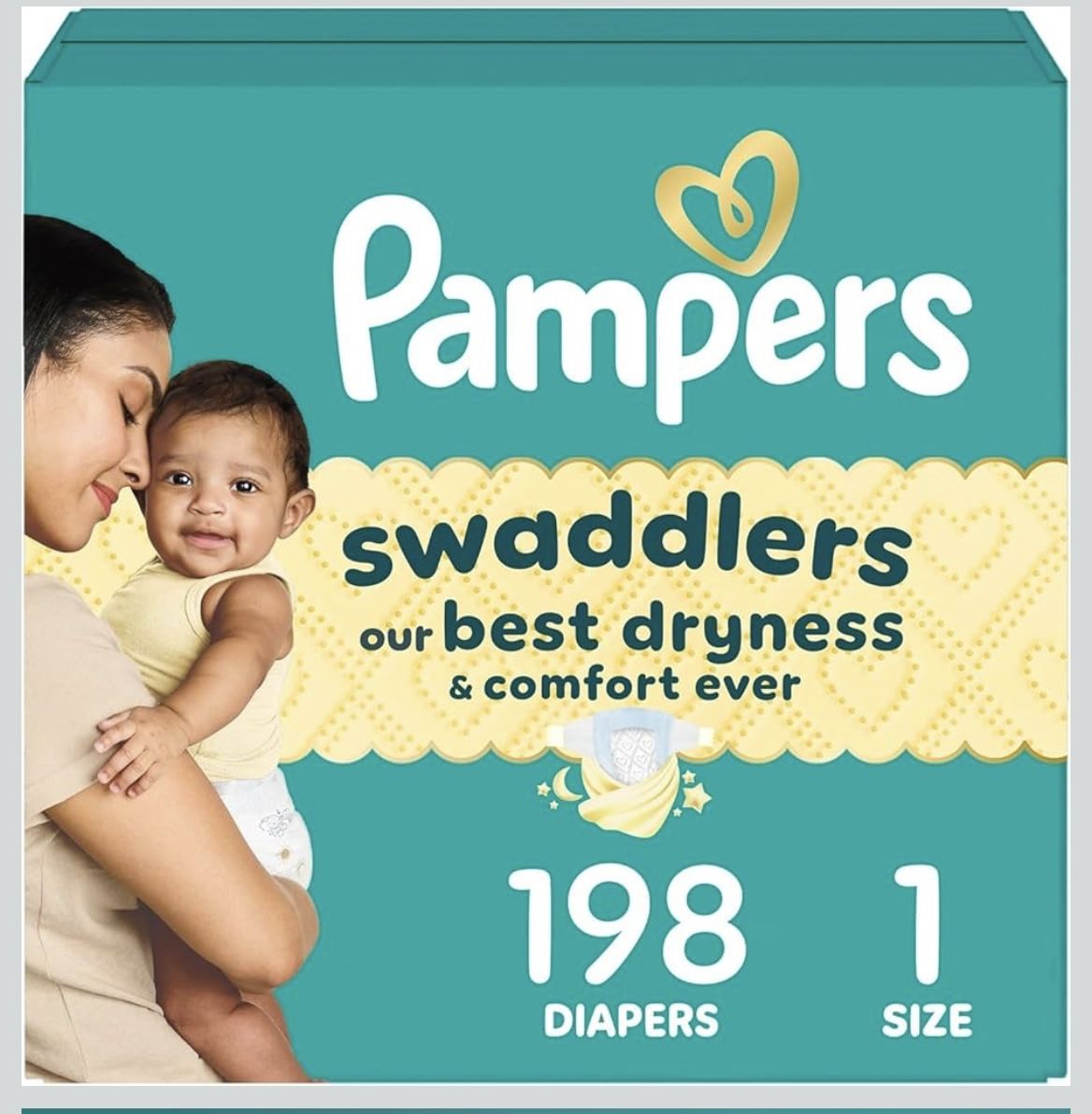 Pampers Swaddlers Diapers, Size 1 (8-14 Ibs), 198 Count, Absorbent, Keeps Baby Dry and Comfortable, Skin Safe Disposable Baby Diaper (PRetails $59.99