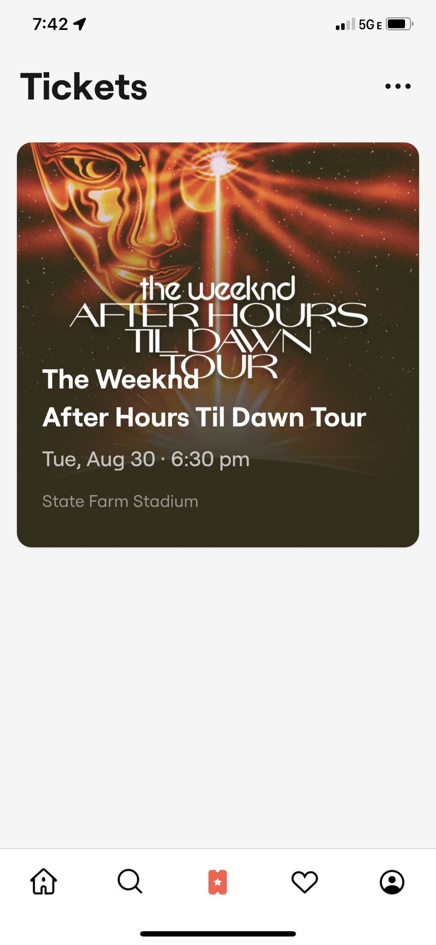 The Weeknd After Hours Til Dawn Tour Silver VIP Ticket Section H-Row 29- Seat 13 Floor Seat