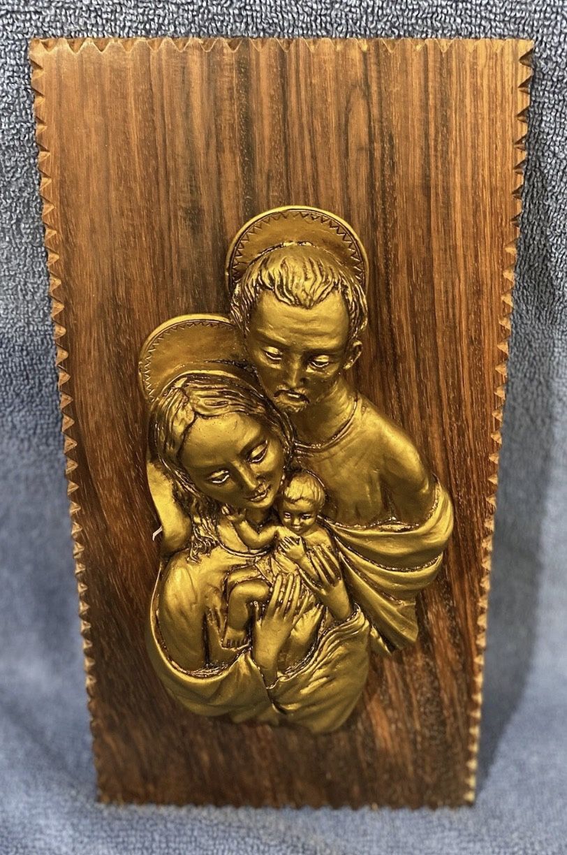 Pre Owned Elegant Holy Family Emblem On Decorative Wooden Wall Hanger Statue Made In Italy good clean condition approximately 11” x 6” x 2” no chips no cracks no repairs with original box as is Please feel free to ask any questions to that you may have and I will get back to you as soon as possibleThank you and have a great day Please view my page for other great deals!!! Please view all photos before purchasing If you’re still on the fence just ask…additional pictures can be taken upon request! Perfect Addition For Any Home Or As A Gift!!