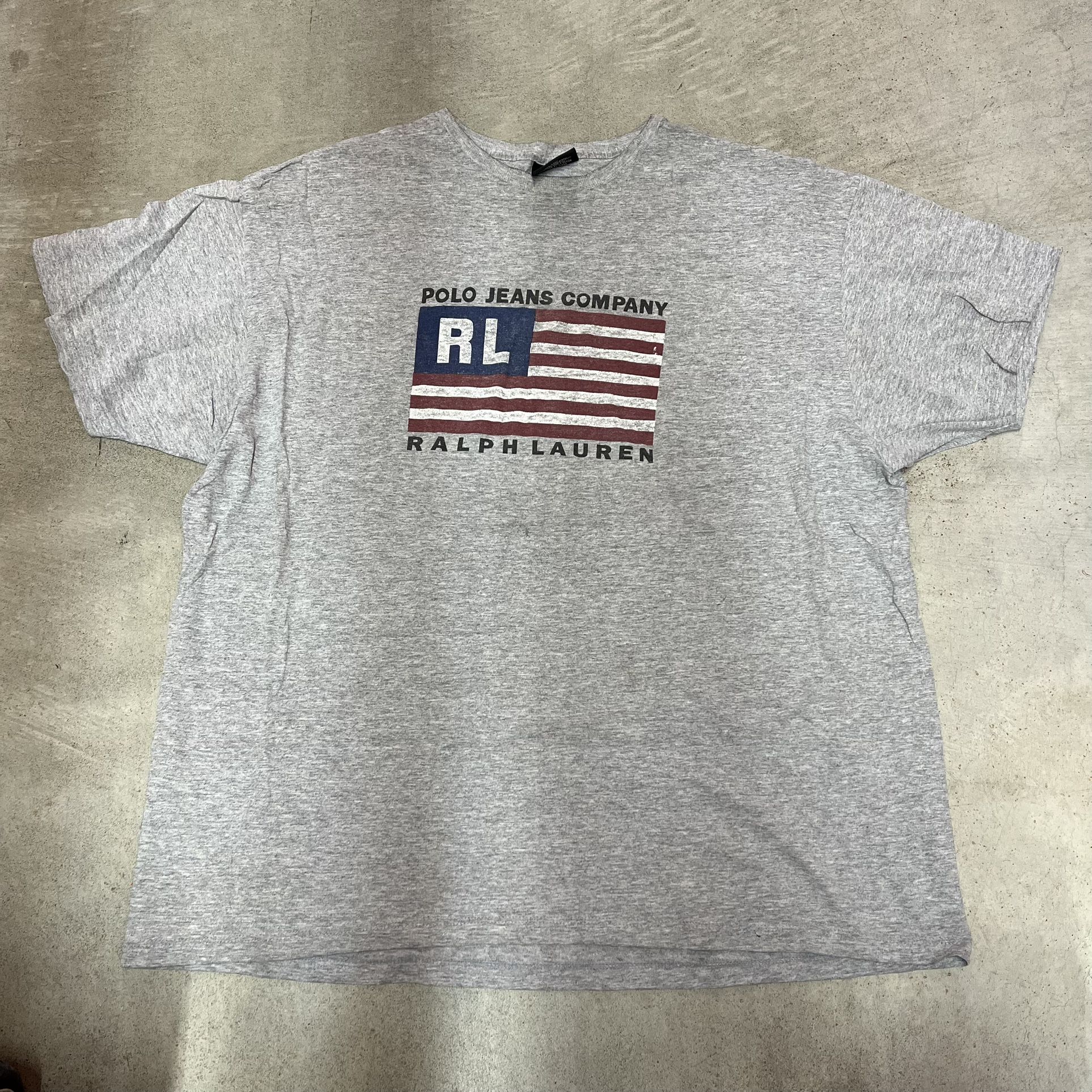 Vintage 90s Ralph Lauren Polo Jeans Co Flag T-Shirt Made in USA Gray Large