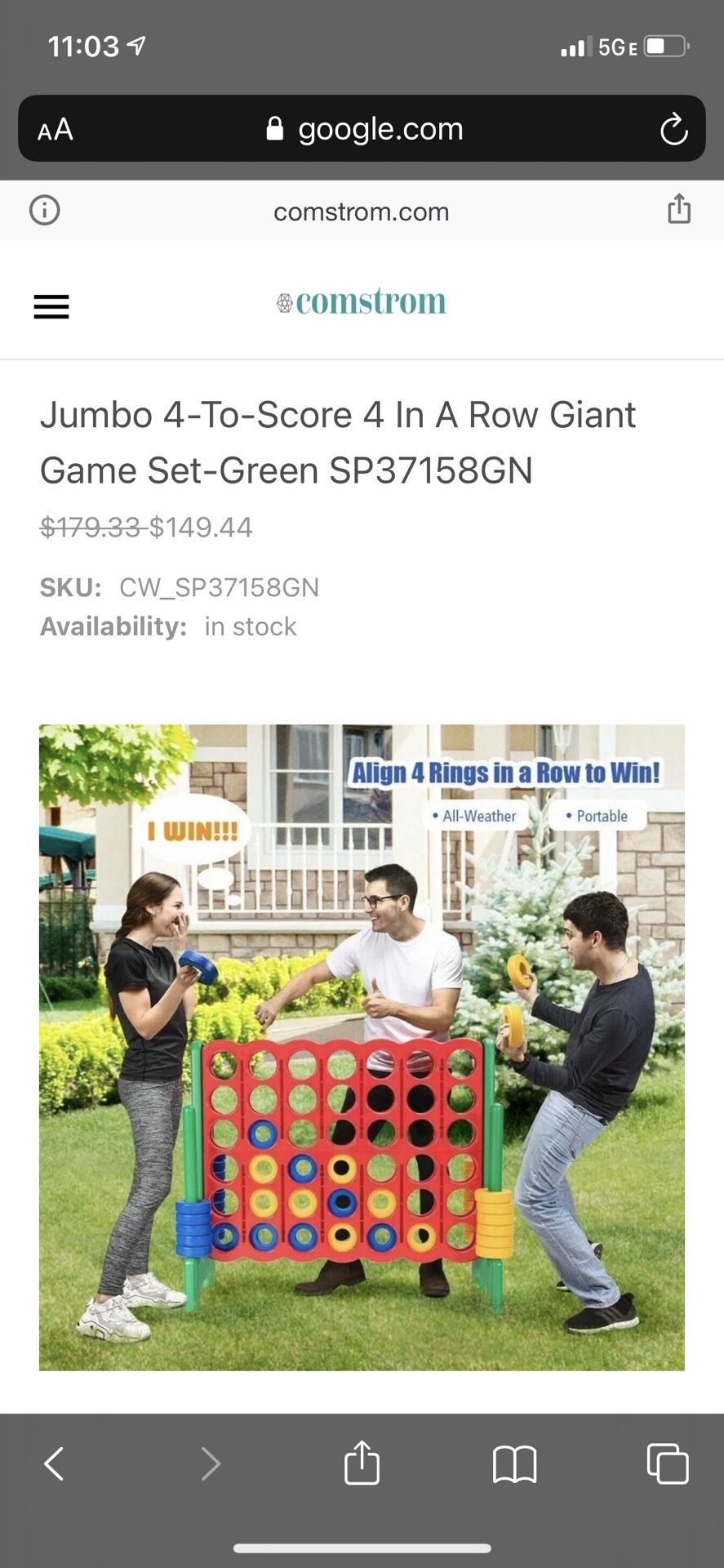 Jumbo 4-To-Score 4 In A Row Giant Game Set-Green