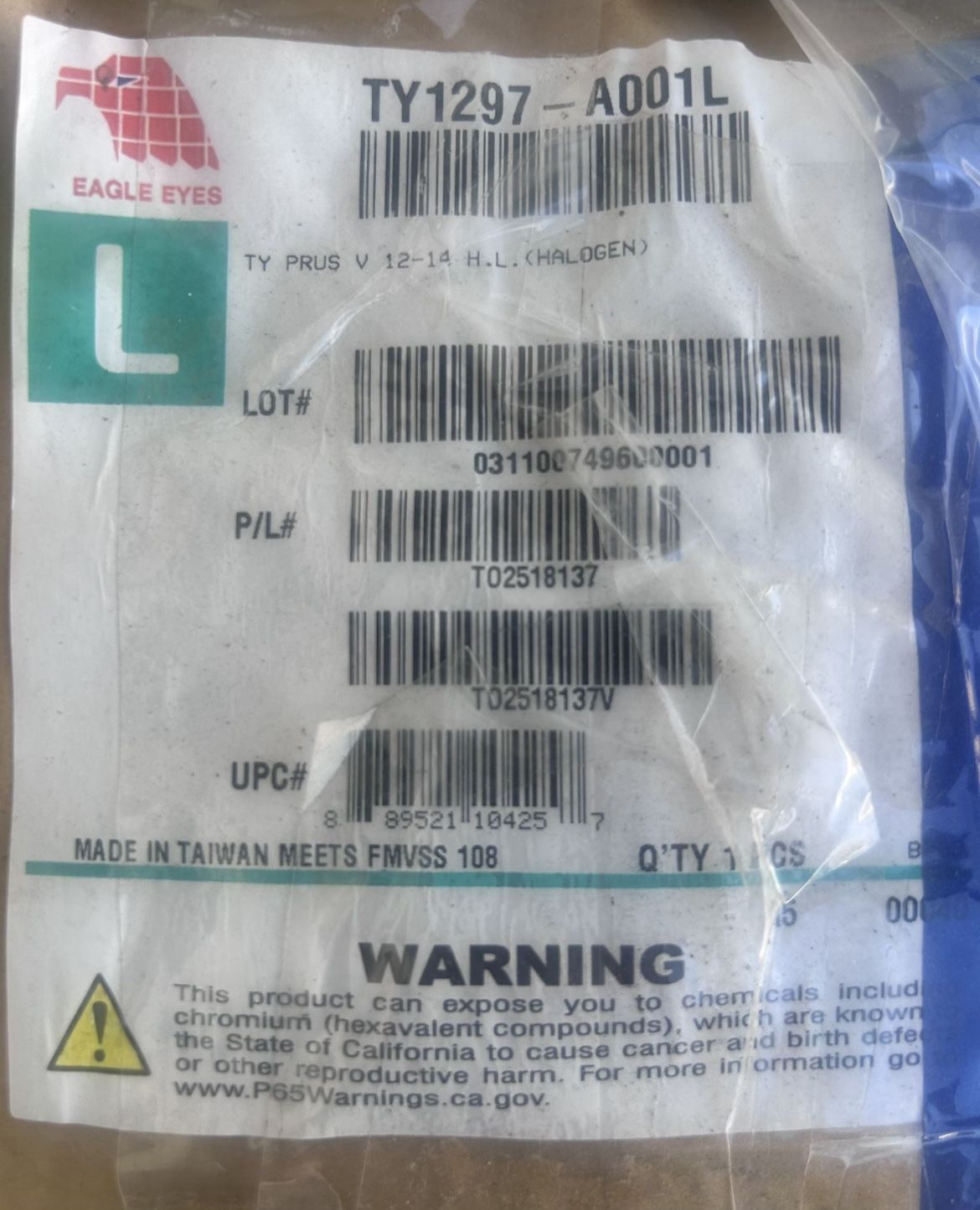 2012-2015 Toyota Prius headlight driver side 3rd gen