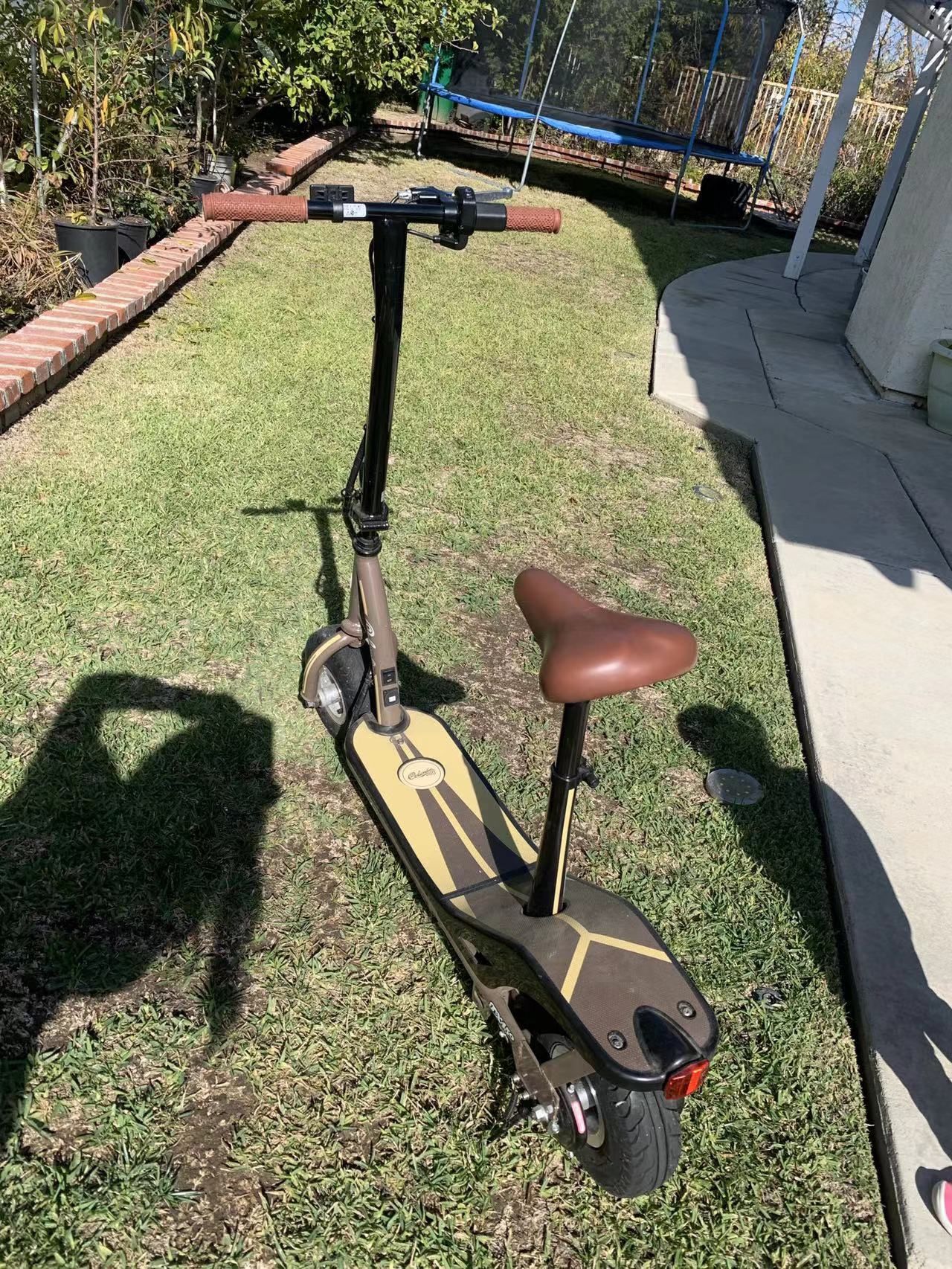 Used electric scooter. Cannot find charging wire 15mph 12 miles range Pick up at walnut Message for info