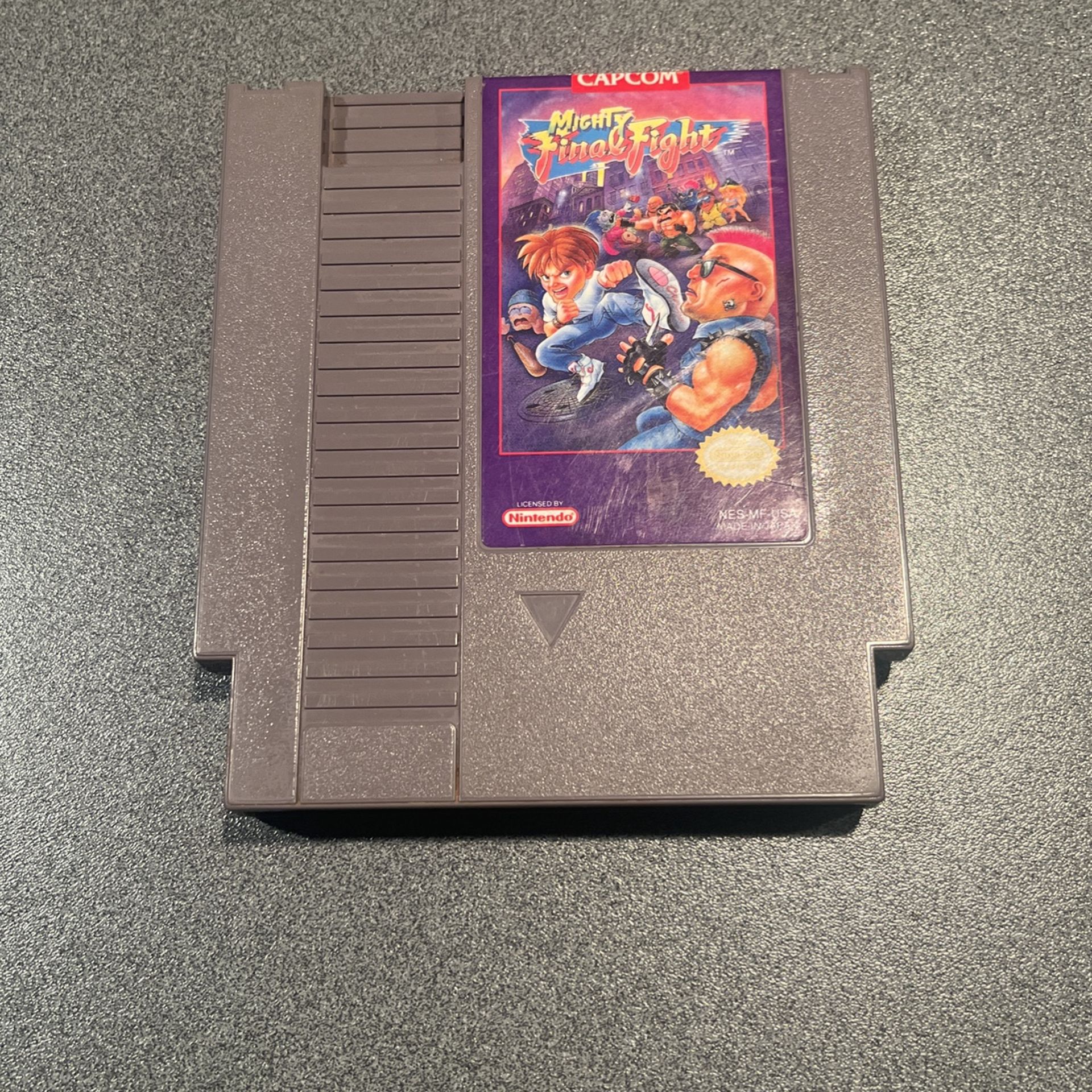 Might Final Fight NES. Top label is peeling up a little. Game works fine.