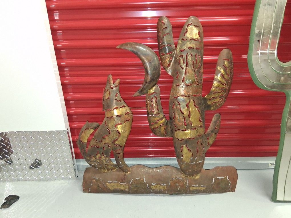 Rustic Metal Howling Coyote & Saguero Cactus Sculpture