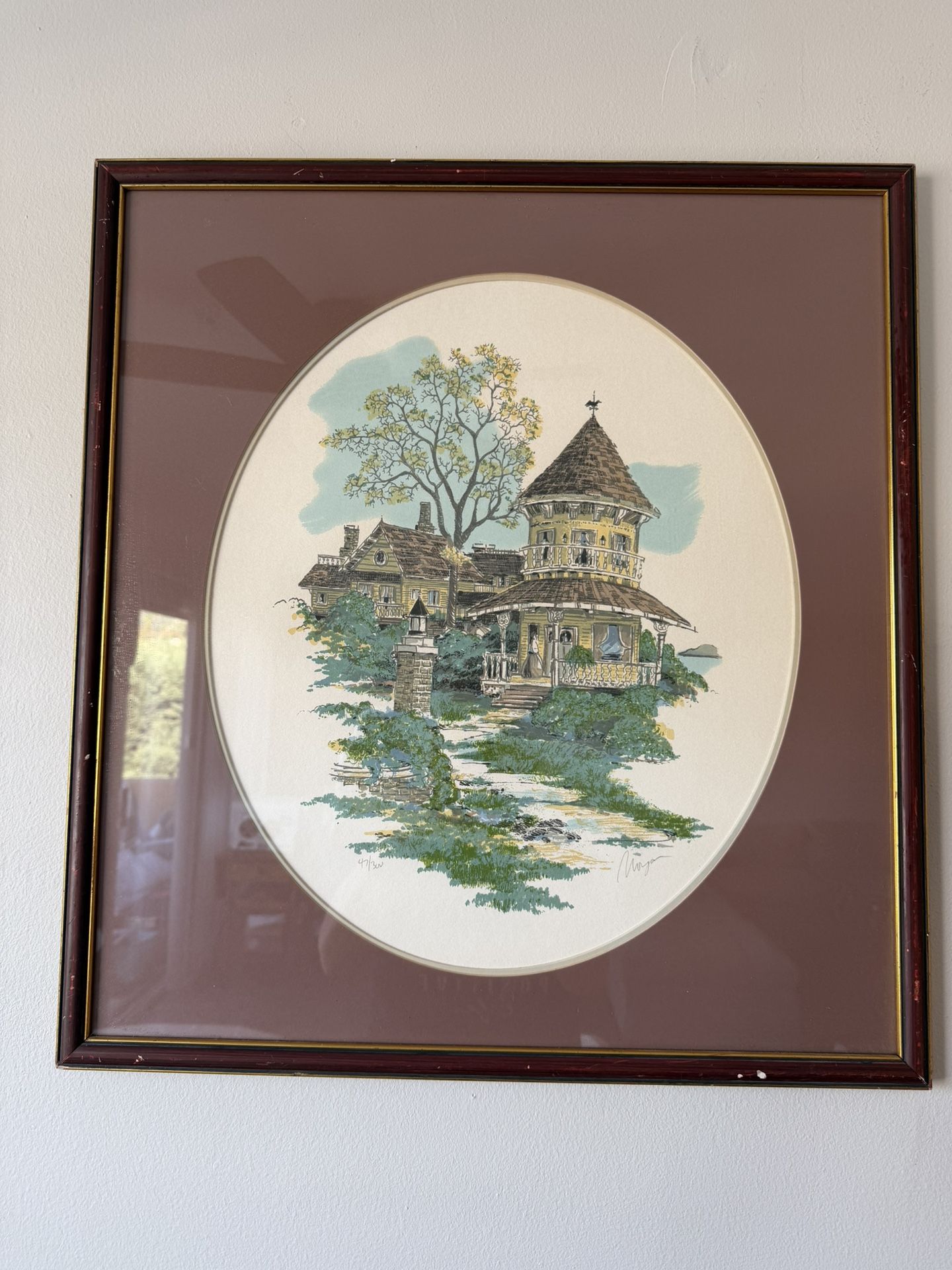 Original signed serigraph by artist Morgan, titled “Stately Manor”. Limited edition 4/100.
