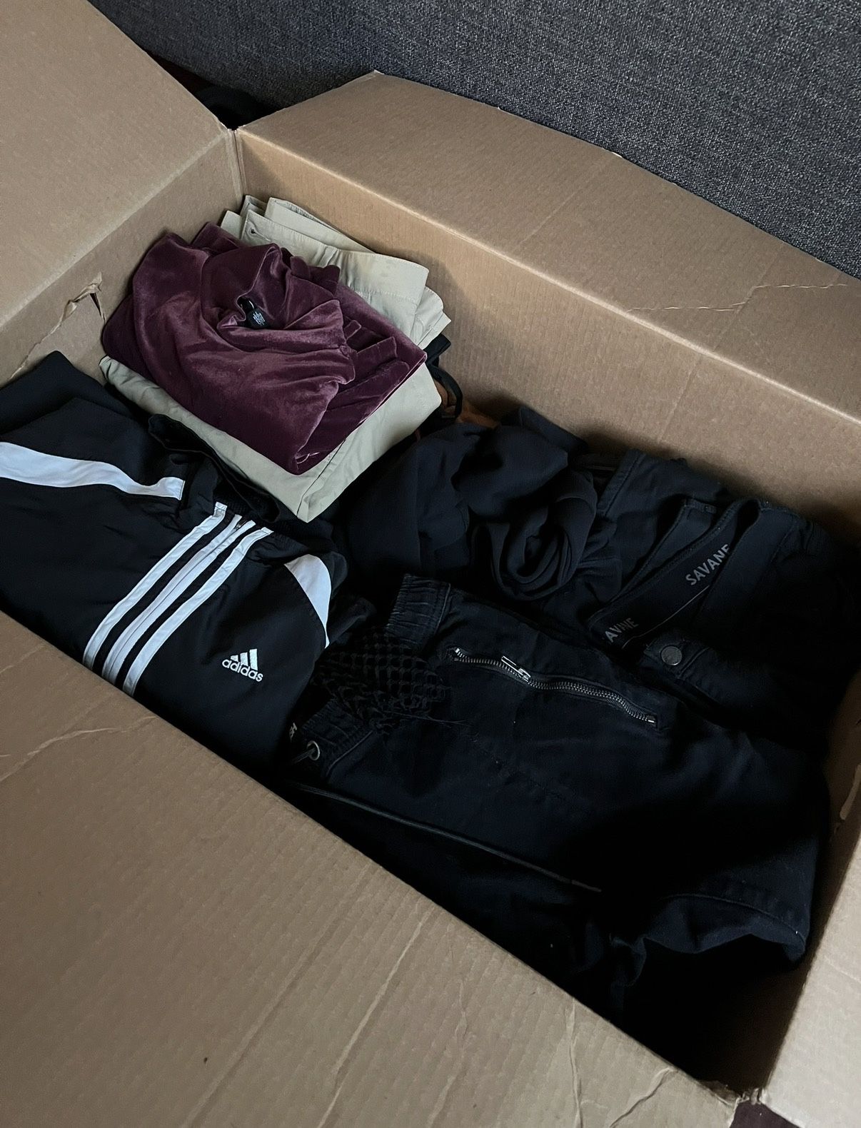 Hello I have a full box of clothes that no longer fit me mixed brands like Zara Nike Adidas Uniqlo H&M and more jackets pants T shirts shoes even boys clothes. Feel free to go through and take what you want and we can work out a deal. Sizes range from small to XXL pants 32 34 36 jackets medium to XXL. Local meetup first come first serve. Thanks