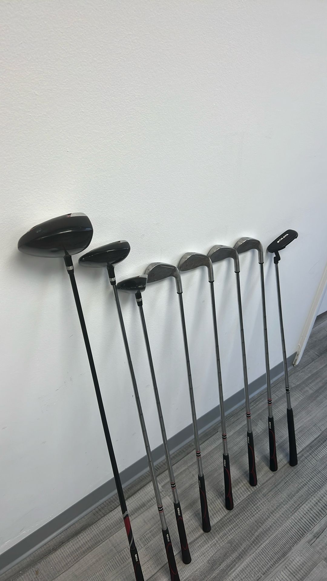 Left handed clubs - lefty Putter 9-6 iron (4 irons) 5 wood 3 wood Driver Bag (sold separetely) $100 Perfect clubs for someone starting out looking to improve on their game. Bought originally from Amazon