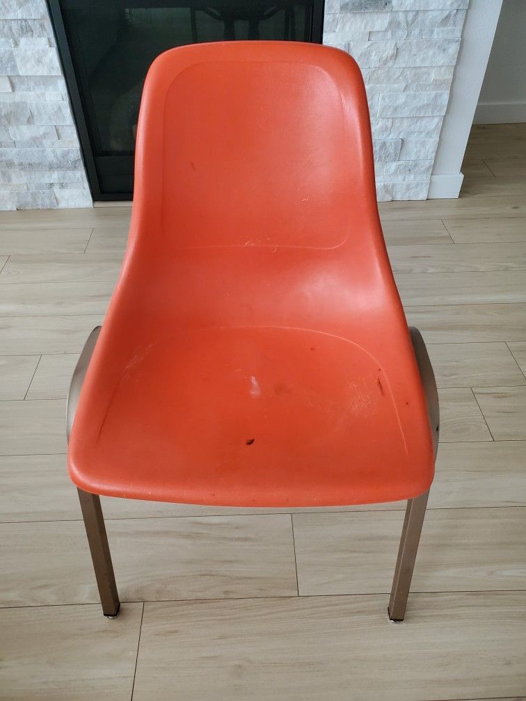 Orange Chair with normal wear. Stains and discoloration as pictured. Can be used as dining chair or desk chair. Cash or Venmo only. Happy Valley area pick up. Message me for any additional details. Thank you