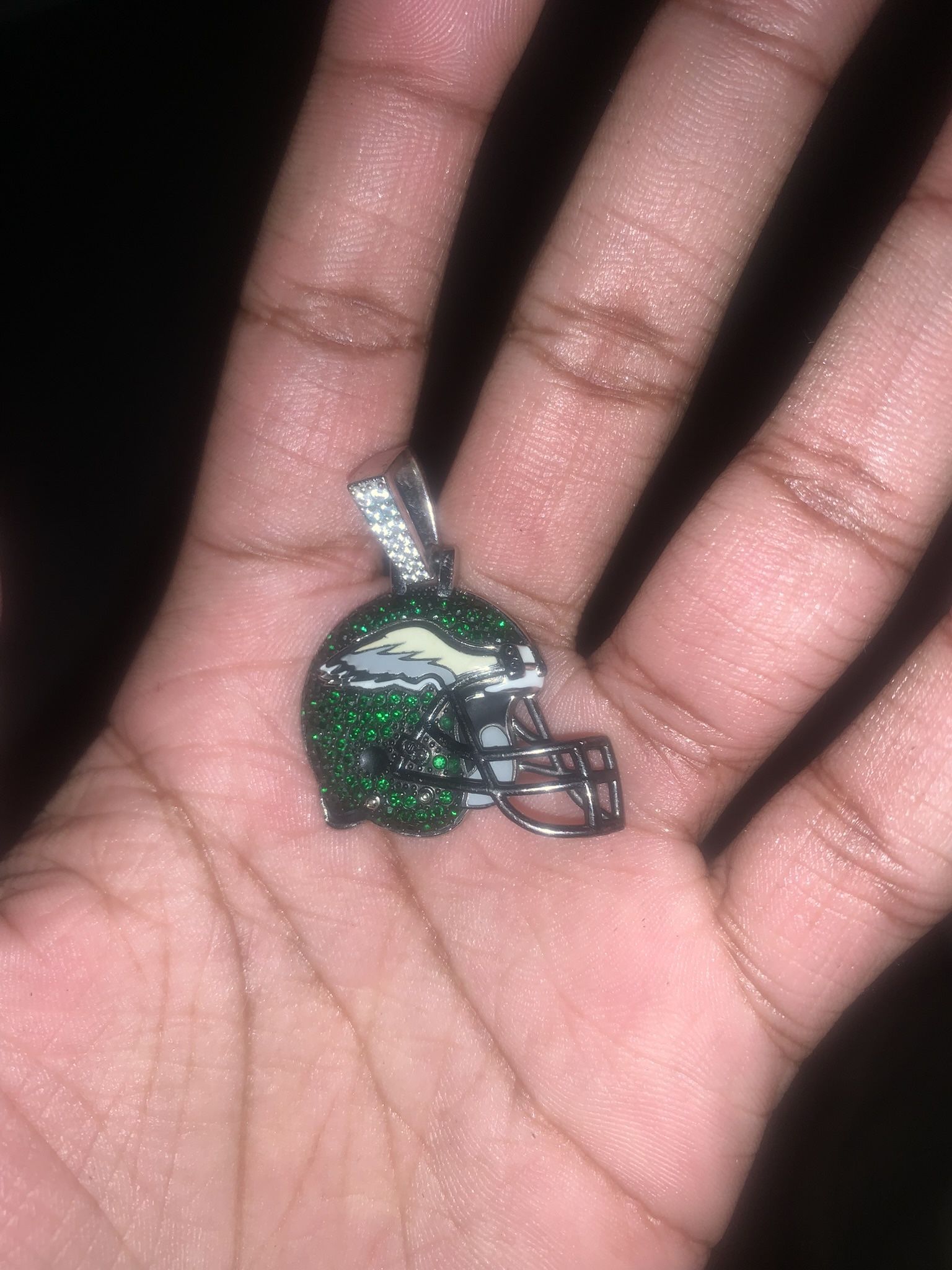 Philadelphia Eagles GLD Helmet Pendant with cz stone crystals.