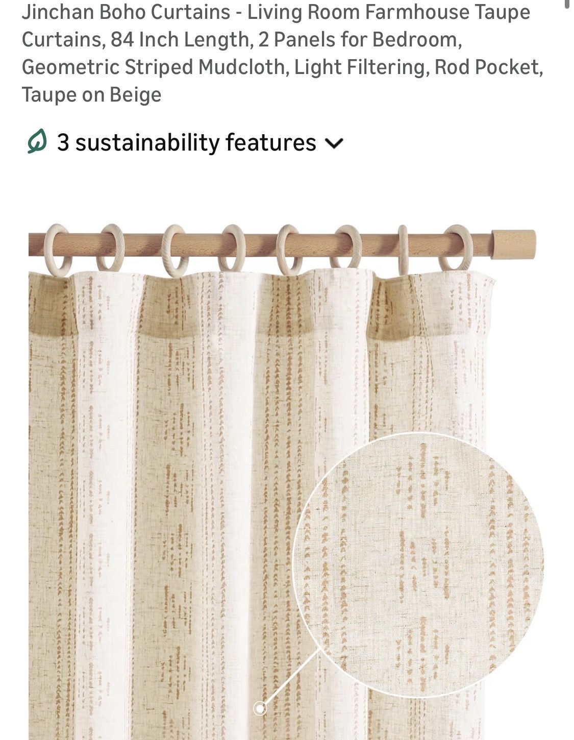 84” 2-panel Linen Curtain, New