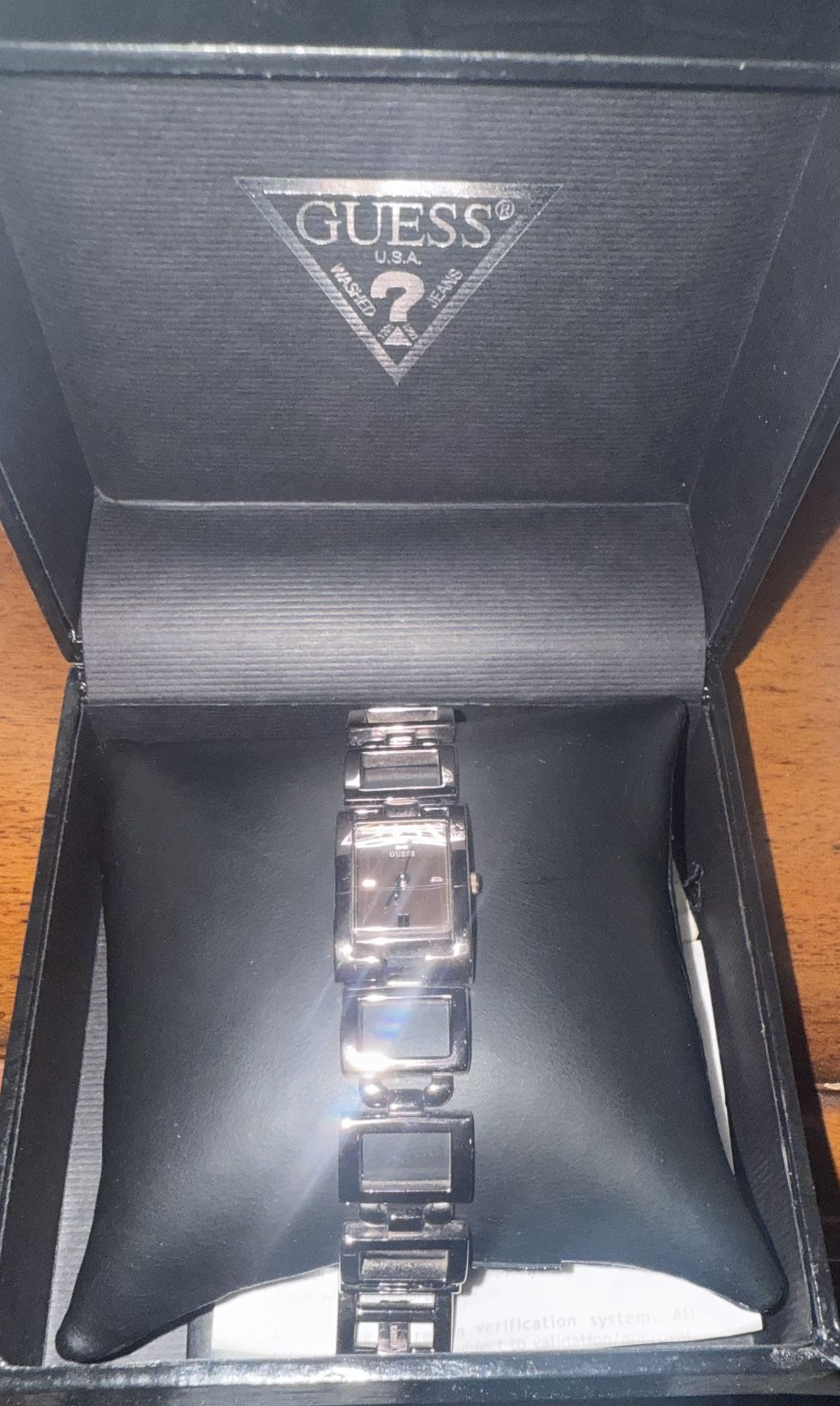 Elegant women’s Guess watch in a dark brown bronze finish. Perfect for any occasion. Like new. Will need to replace battery. Comes with original box.
