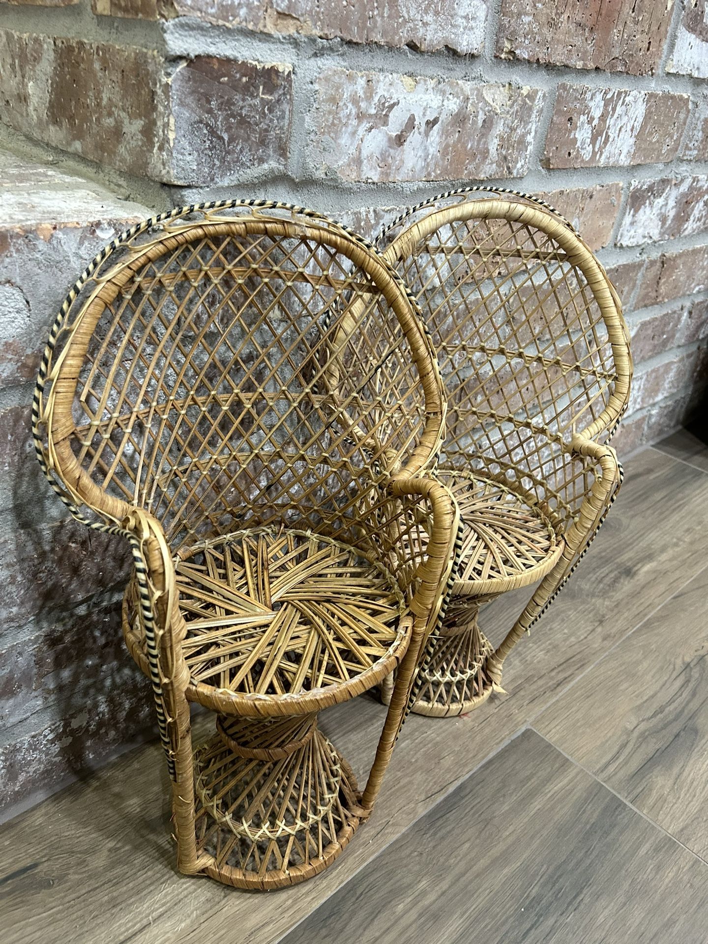 2 piece set (Small peacock doll chair/plant stands 8”x19” $15 each Follow us on Fb @jnafinds Webster pick up. No holds unless you pay electronically.