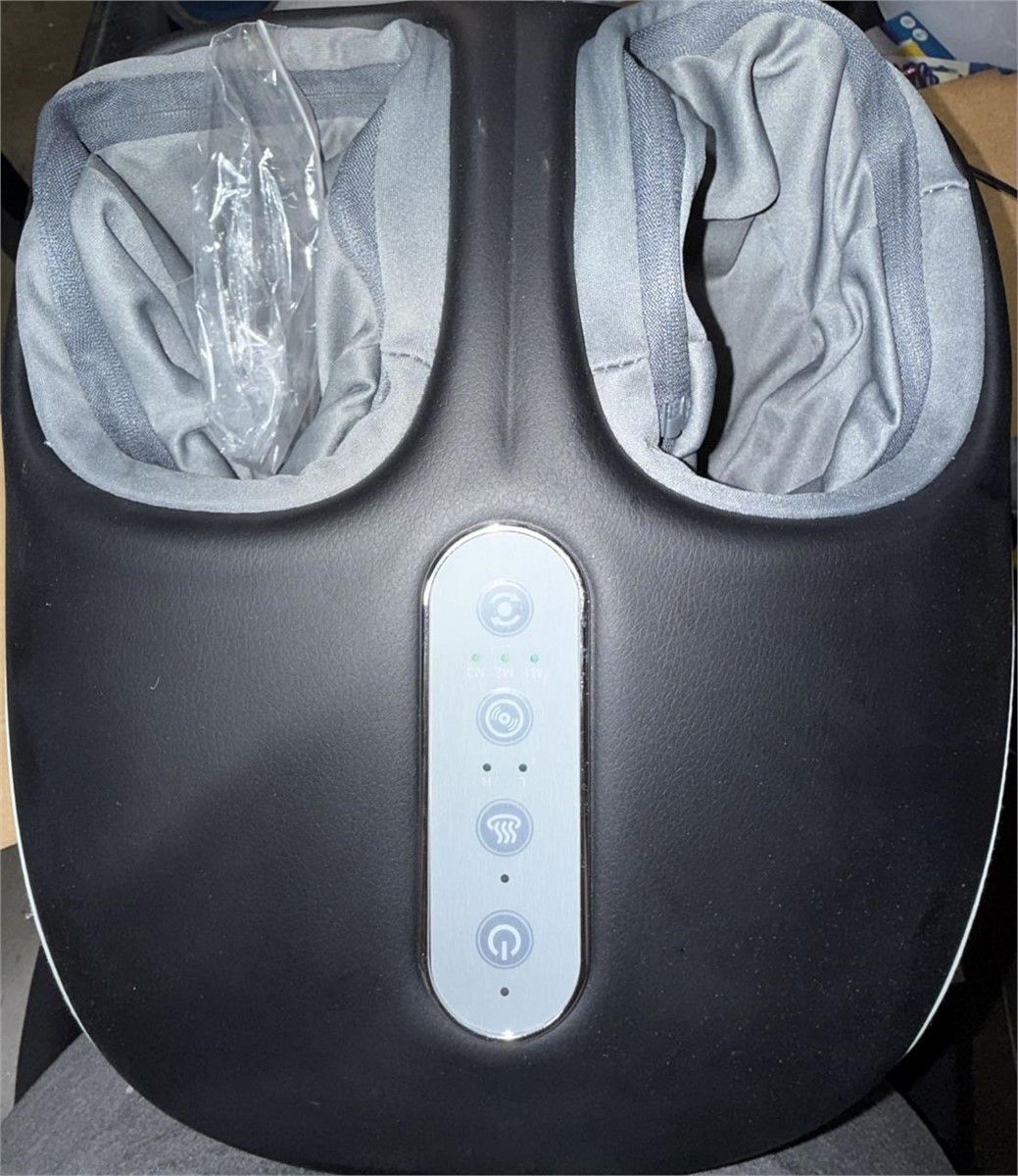 Sells for $86 retail Relaxing foot massager with comprehensive massage for ultimate relief. Has rolling and kneading, plus air compression. Also has a heat function for extra comfort. Easy-to-use control panel with multiple massage modes (M1, M2, M3) and adjustable air pressure (low/high). Great for tired feet. Comes in black and grey.