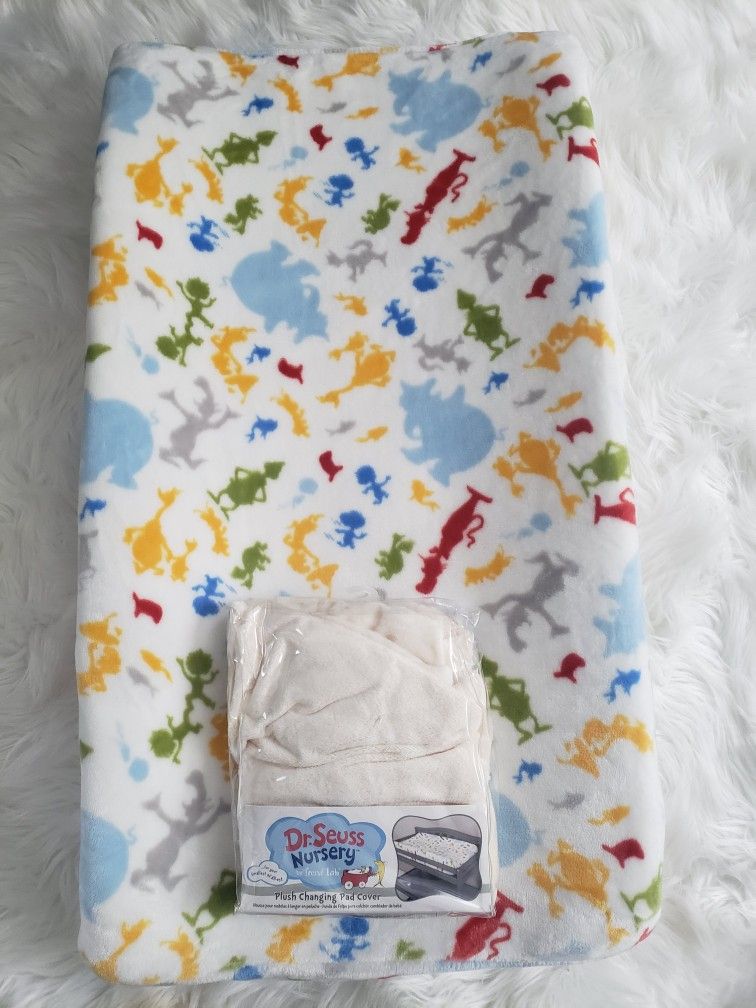 Changing Table Pad with 2 extra Plush Changing Pad Covers. One is cream and the other is Dr. Seuss.