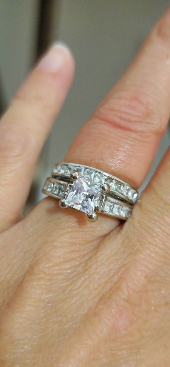Pretty women's wedding band set in great condition Size 7 Silver Plated $15 Firm pick up only in Mcalpin Florida