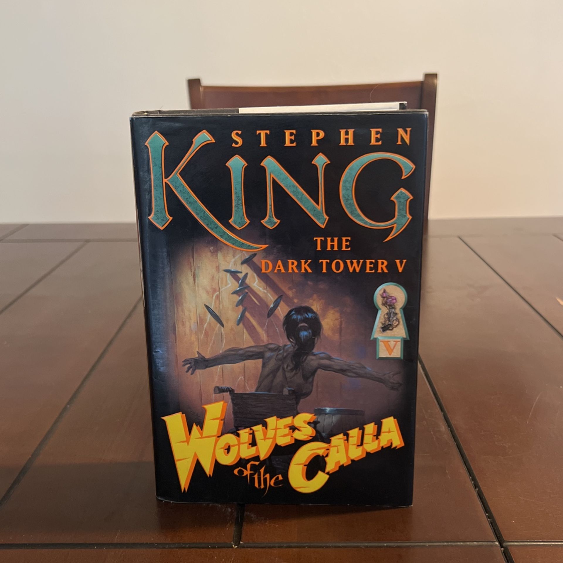 First trade edition of Stephen King Wolves of The Calla The Dark Tower V. Excellent condition never read. Dust jacket has some slight shelf wear on back. Great piece for Stephen King fans.