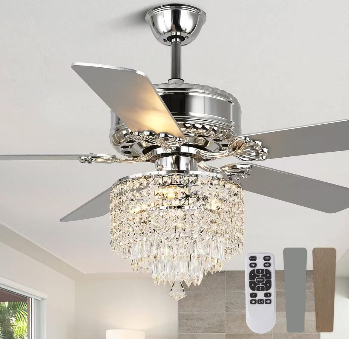 ❤️🔥 Crystal Ceiling Fan Fandelier with Lights and Remote Control,52" Modern Chandelier Ceiling Fans with Reversible Blades, Silent Motor,Fandelier C
