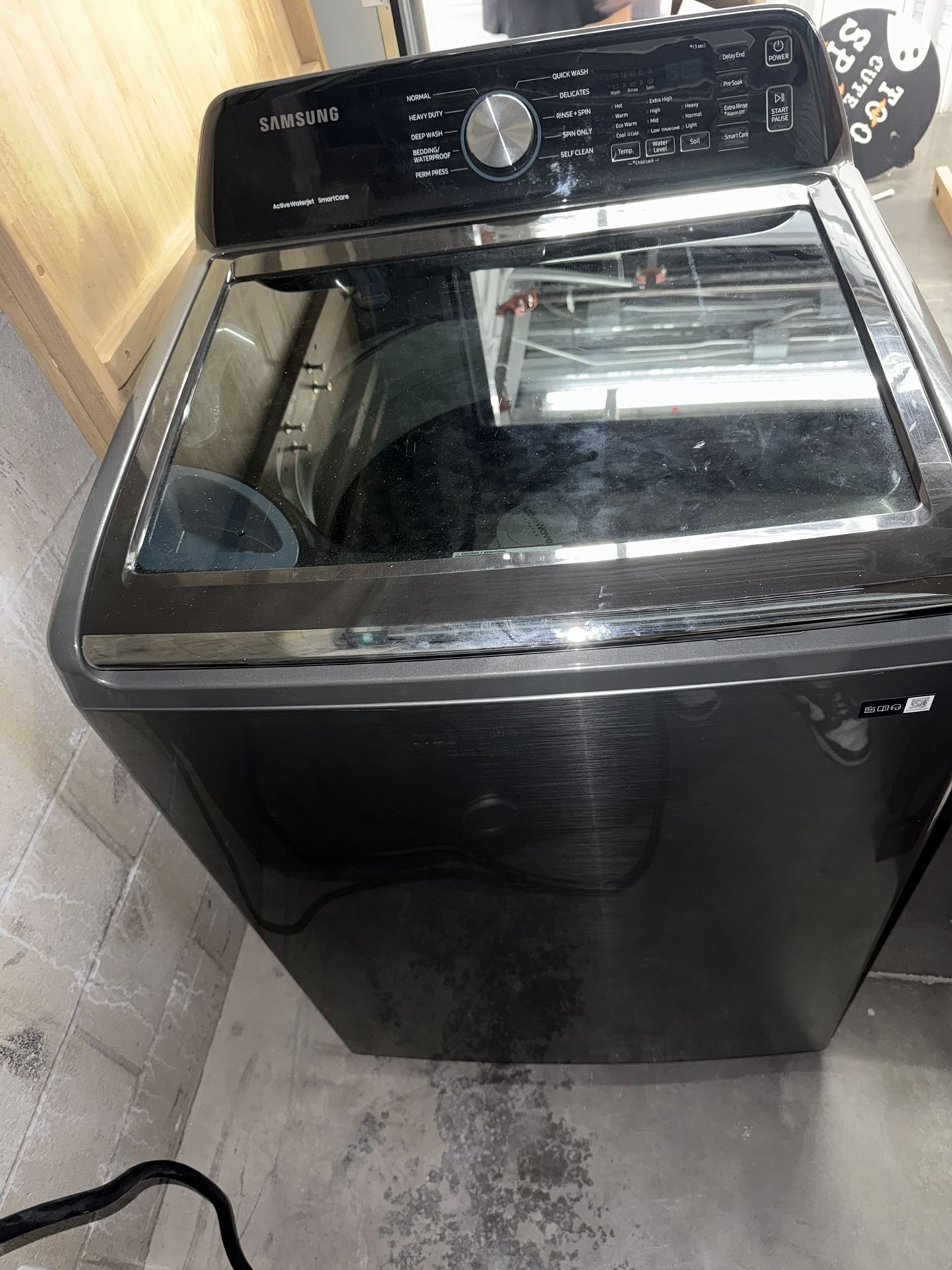 Samsung 4.4 cu. ft. Top Load Washer with ActiveWave™ Agitator and Active WaterJet in DarkPlatinum. Samsung 7.4 cu. ft. Electric Dryer with Sensor Dry in Platinum. Used for a year minor scratches on the door of dryer. Works perfectly fine moving in 2 weeks and need the money to move asap. Will need to pick up cannot deliver.