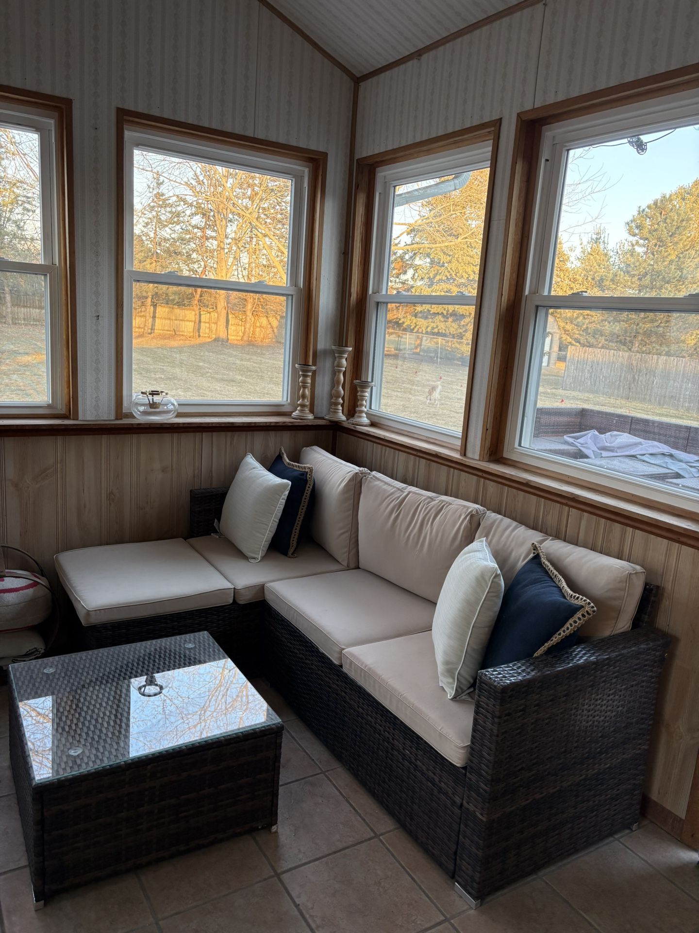 Like new outdoor furniture with cushions and pillows. Always kept in sunroom, hardly used. $450 OBO Table 13.5'' H X 25'' W X 25'' L Sectional 28.5'' H Seat Height - Floor to Seat 13'' H